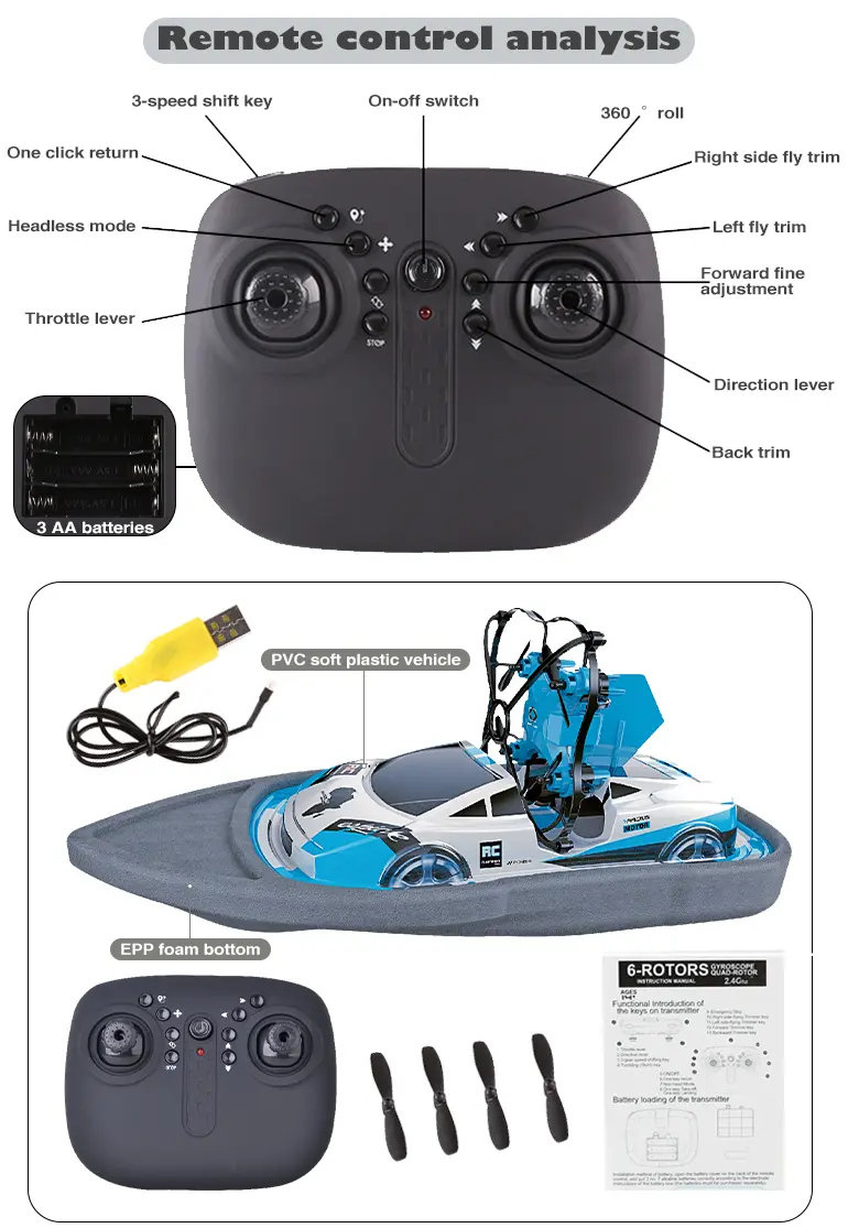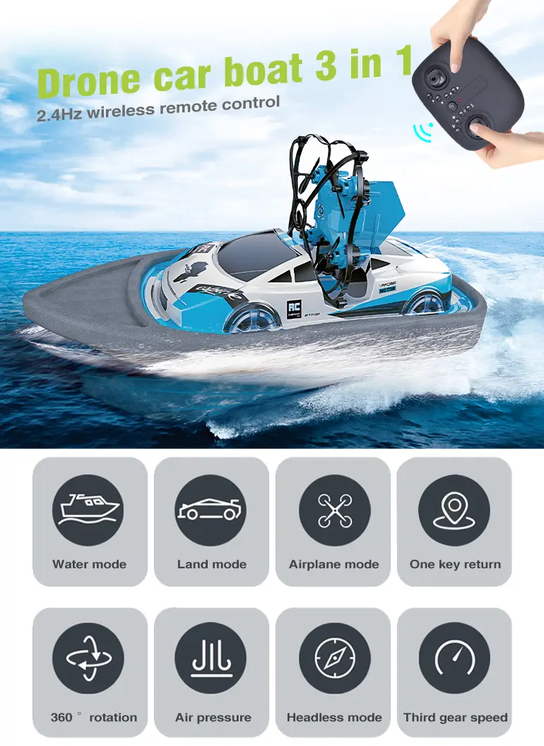 Features of the 3-in-1 Drone Car Boat Toy CJ-1415936