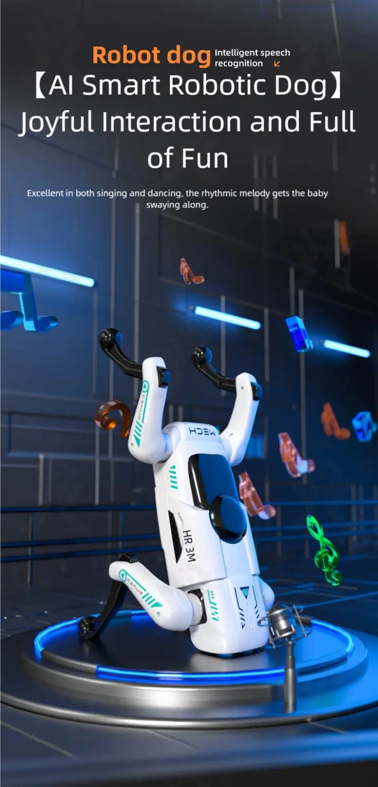 Our AI robotic pet dog toy can recognize and respond to voice commands, offering interactive talking and learning experiences.