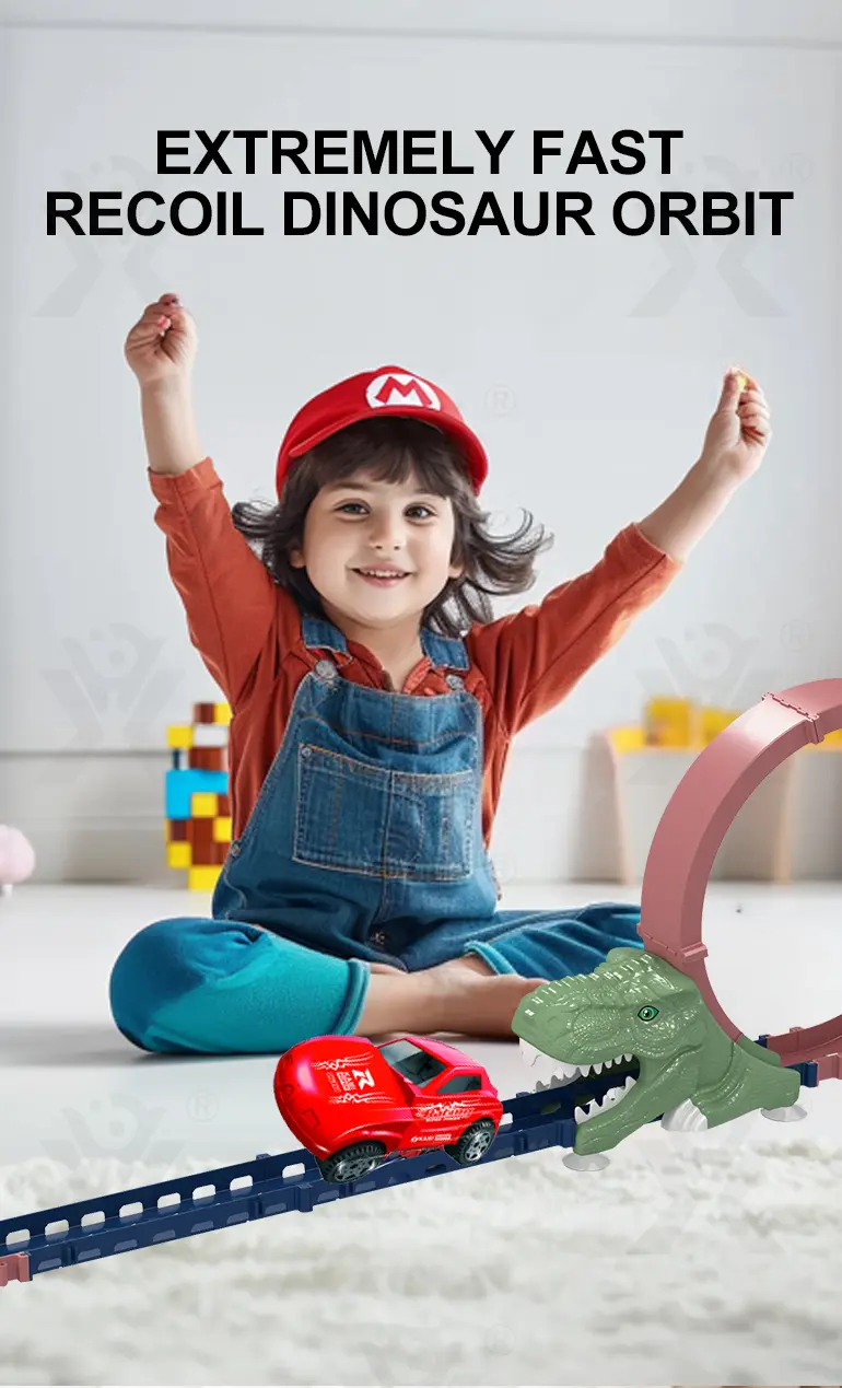 Wholesale orbit track toy, dinosaur theme. Battery-free dinosaur orbit track with 360° loop, recoil launch, high-speed racing, and parent-child competition for focused fun.