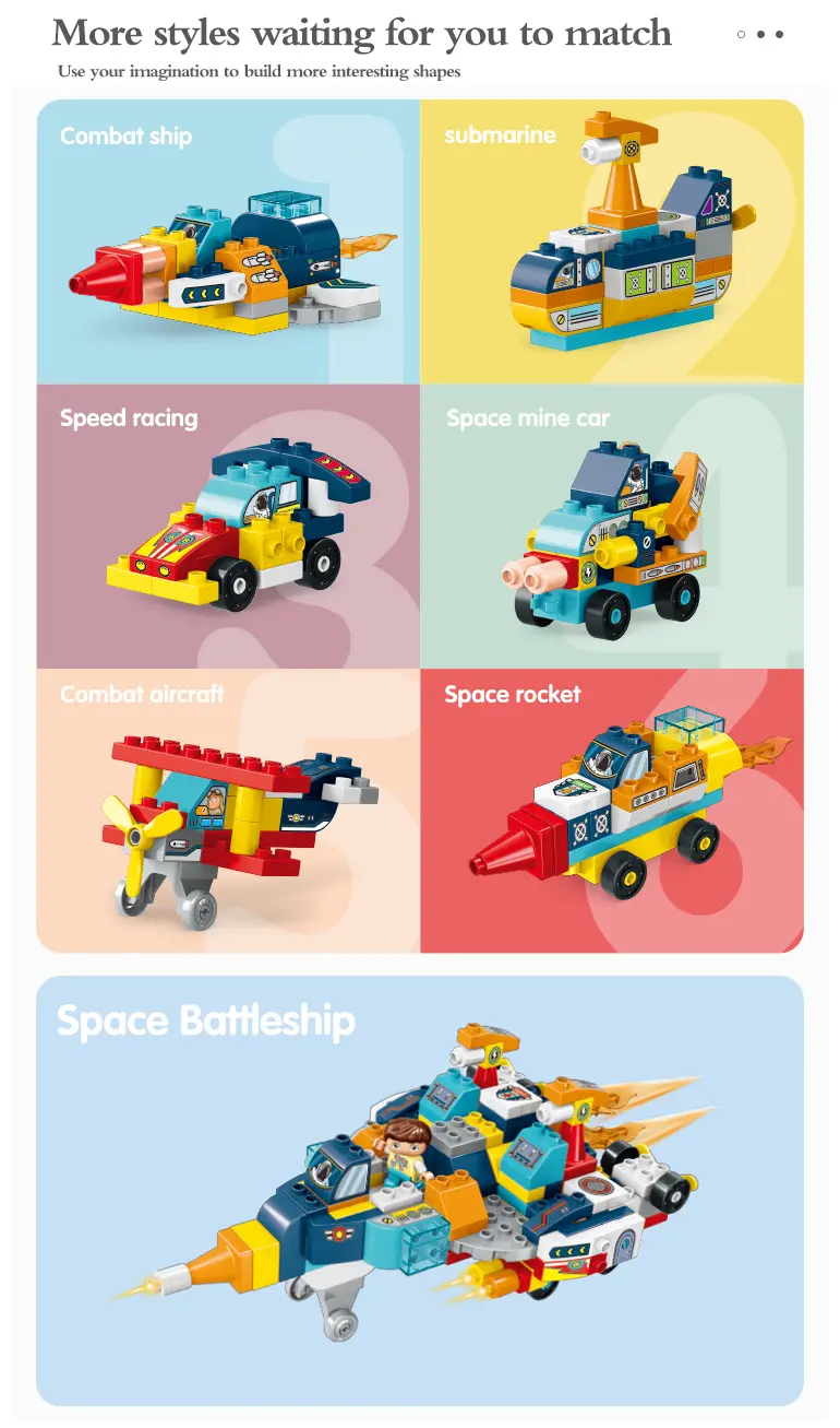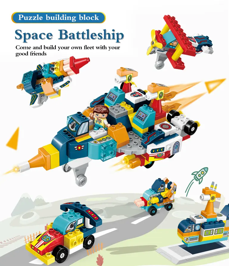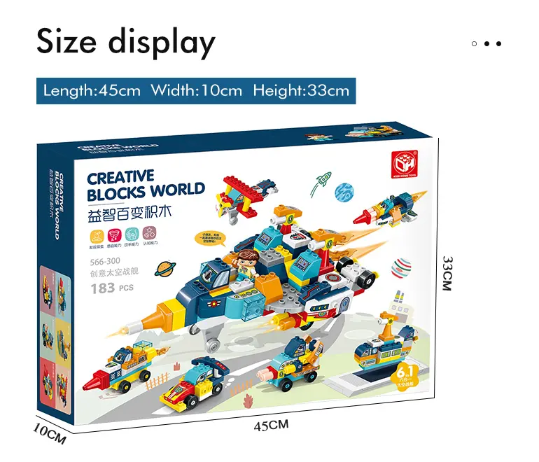 Wholesale building blocks spaceship, within 183-pcs! This building blocks spaceship features multi-model creative assembly, smooth-edged ABS material. It sparks unlimited imagination & hands-on skills.