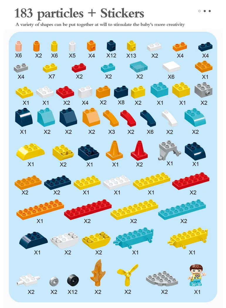 - 183 Pieces for Unlimited Creative Possibilities: With 183 detailed pieces and stickers, various shapes allow free combination. Enough parts for simple to complex creations.