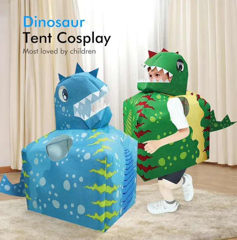 This dinosaur tent cosplay toy encourages creative role-playing and imaginative adventures, perfect for dinosaur-themed storytelling and games.
