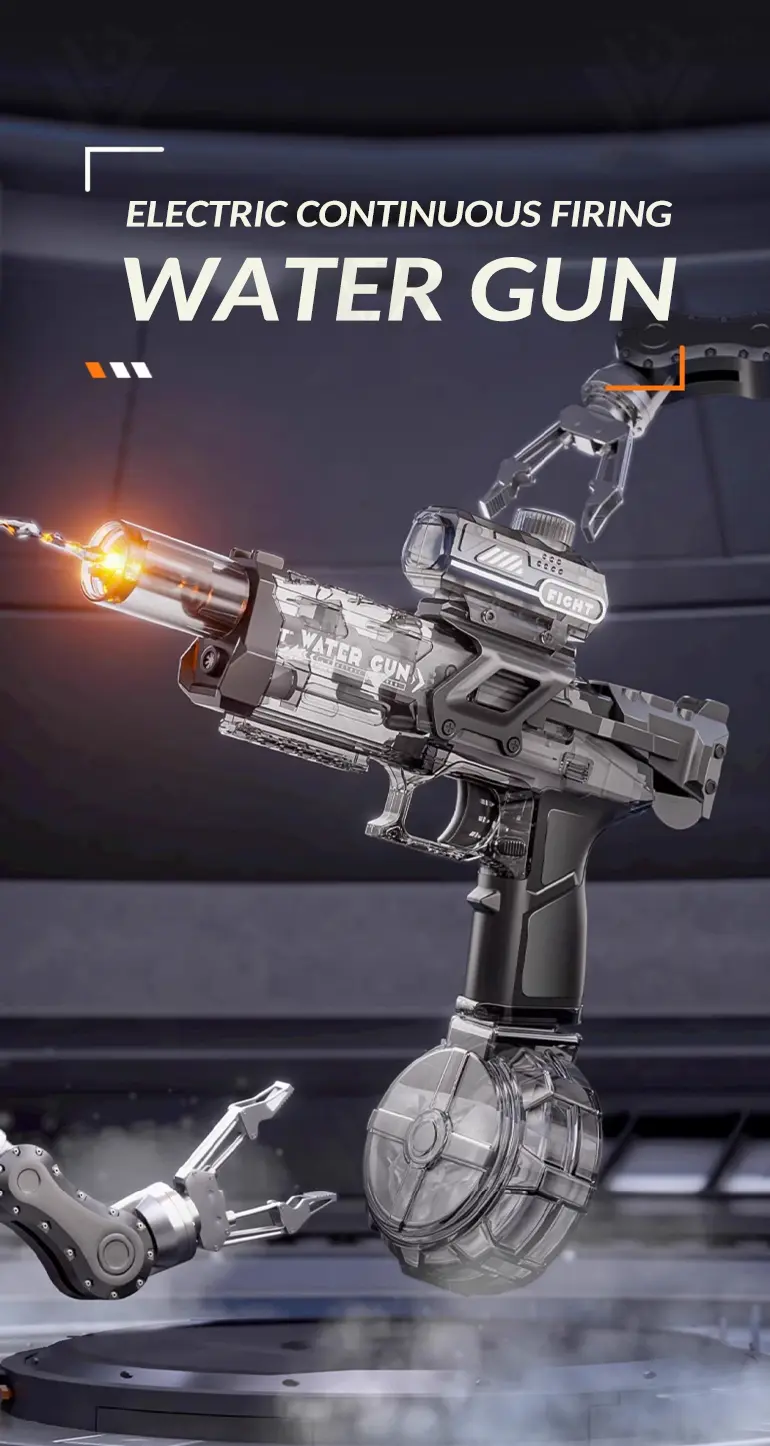 Powered by a rechargeable battery, a non-stop water shooting is one of its features, offering rapid-fire action.