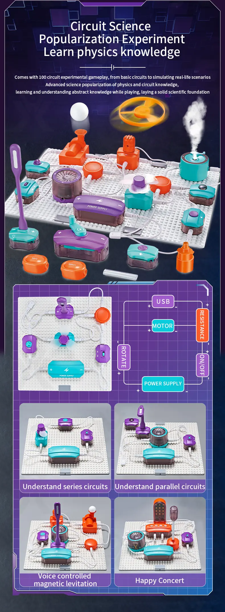 - 100+ Circuit Experiments Rich Content: This toy has 100+ experiments from basic circuits to real-life scenarios, providing a comprehensive circuit knowledge system for kids.