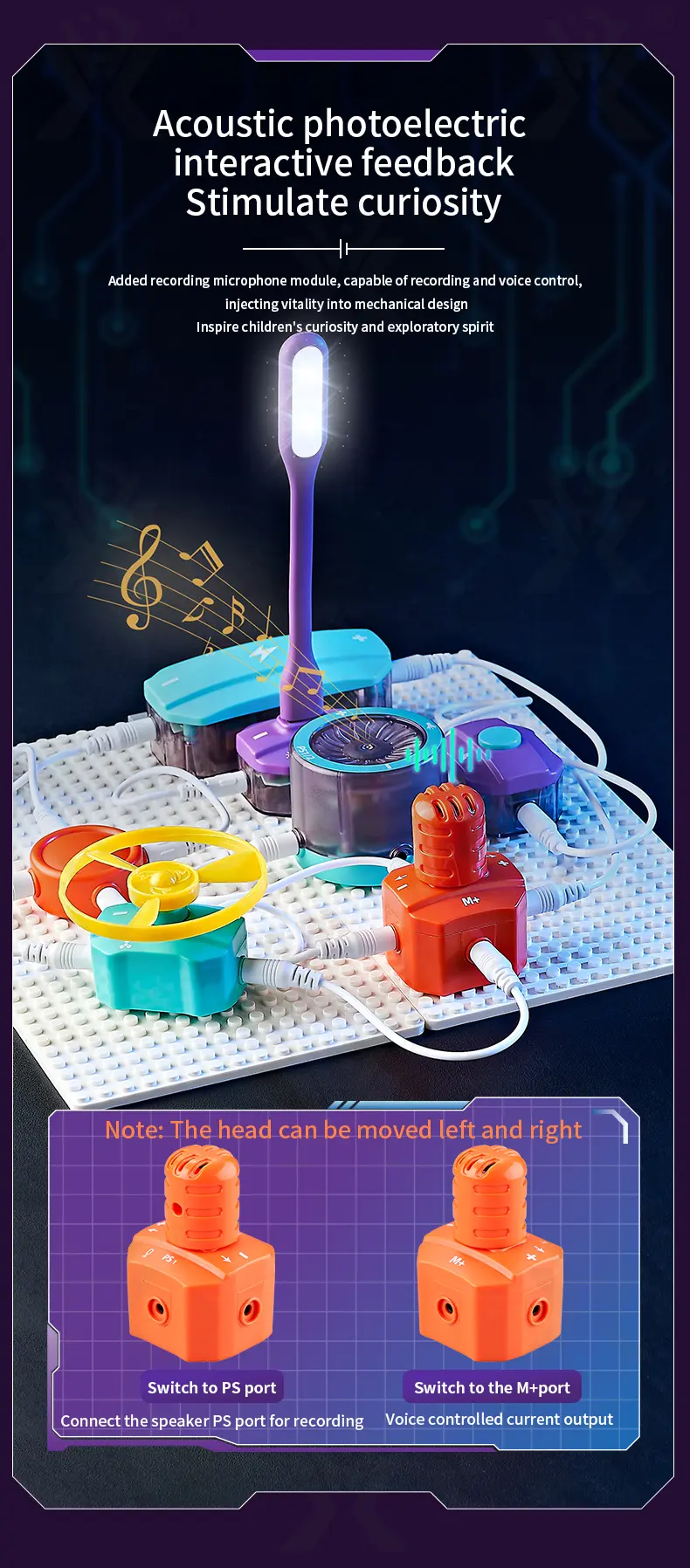 - Sound-Light-Electric Interaction: Our wholesale science and education electronic bricks include recording mic, photosensitive, rotating, wireless modules for voice control, and magnetic levitation.