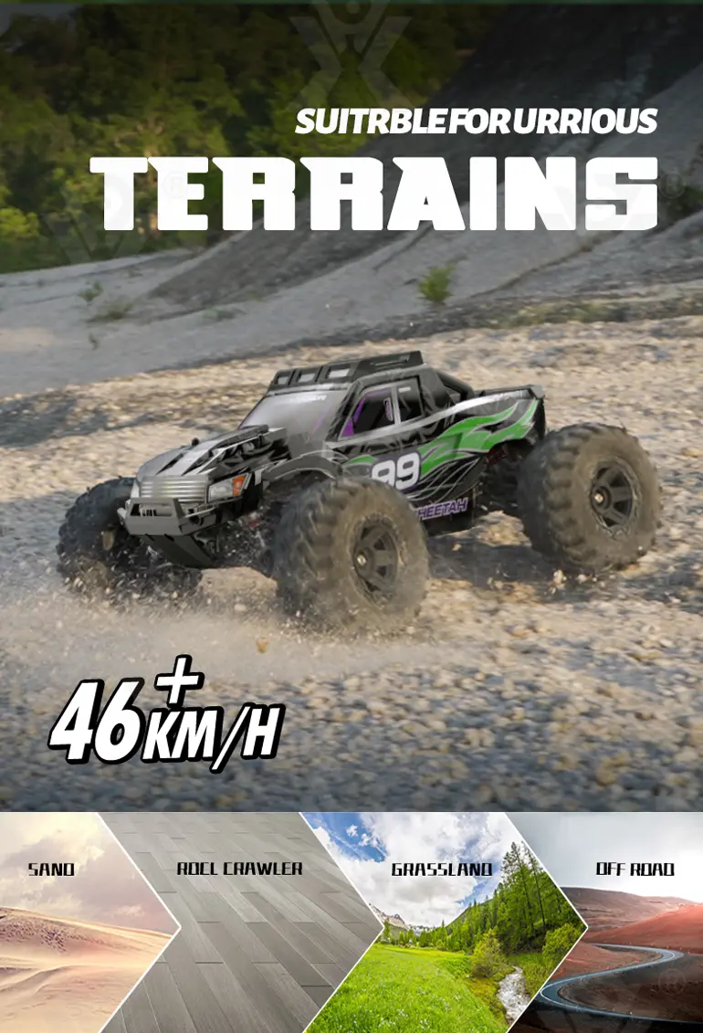 Wholesale high-speed truggy toy with a remote controller. This 4WD high-speed truggy features 46km/h, full metal drive, hydraulic suspension, and is built for rough terrains.