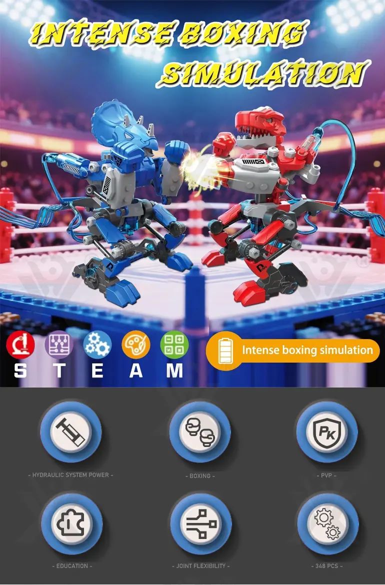 Wholesale hydraulic boxing robot. Our hydraulic boxing robot features a 348-piece assembly, 5 PVP teams, realistic moves, and STEM learning for children aged 8 and above.