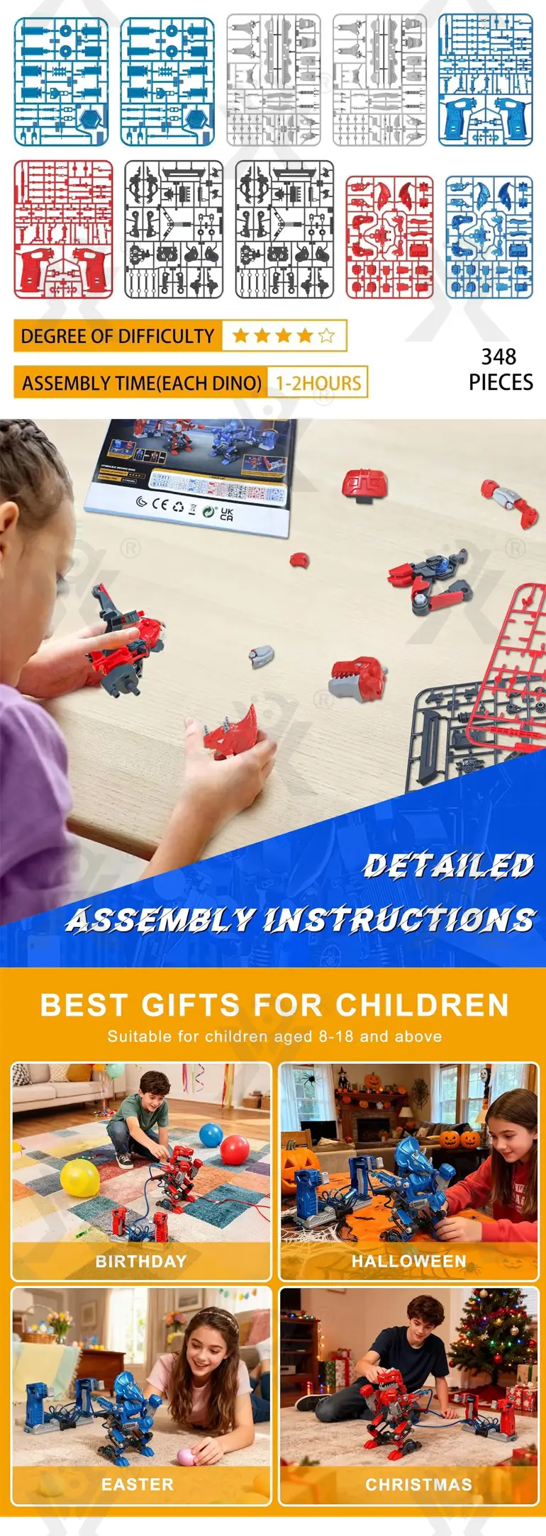 The toy supports multi-player battles with 5 different dinosaur robots, encouraging strategy and social play.