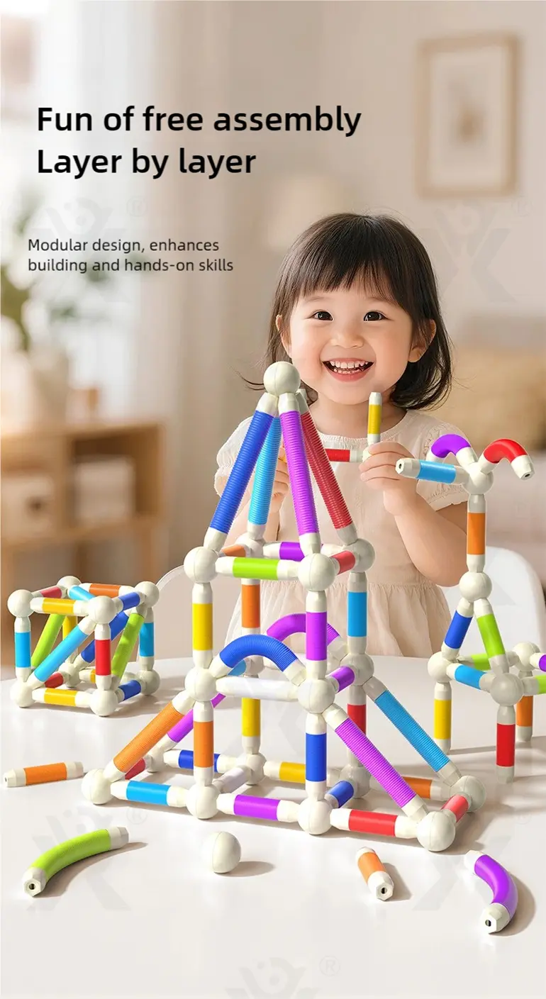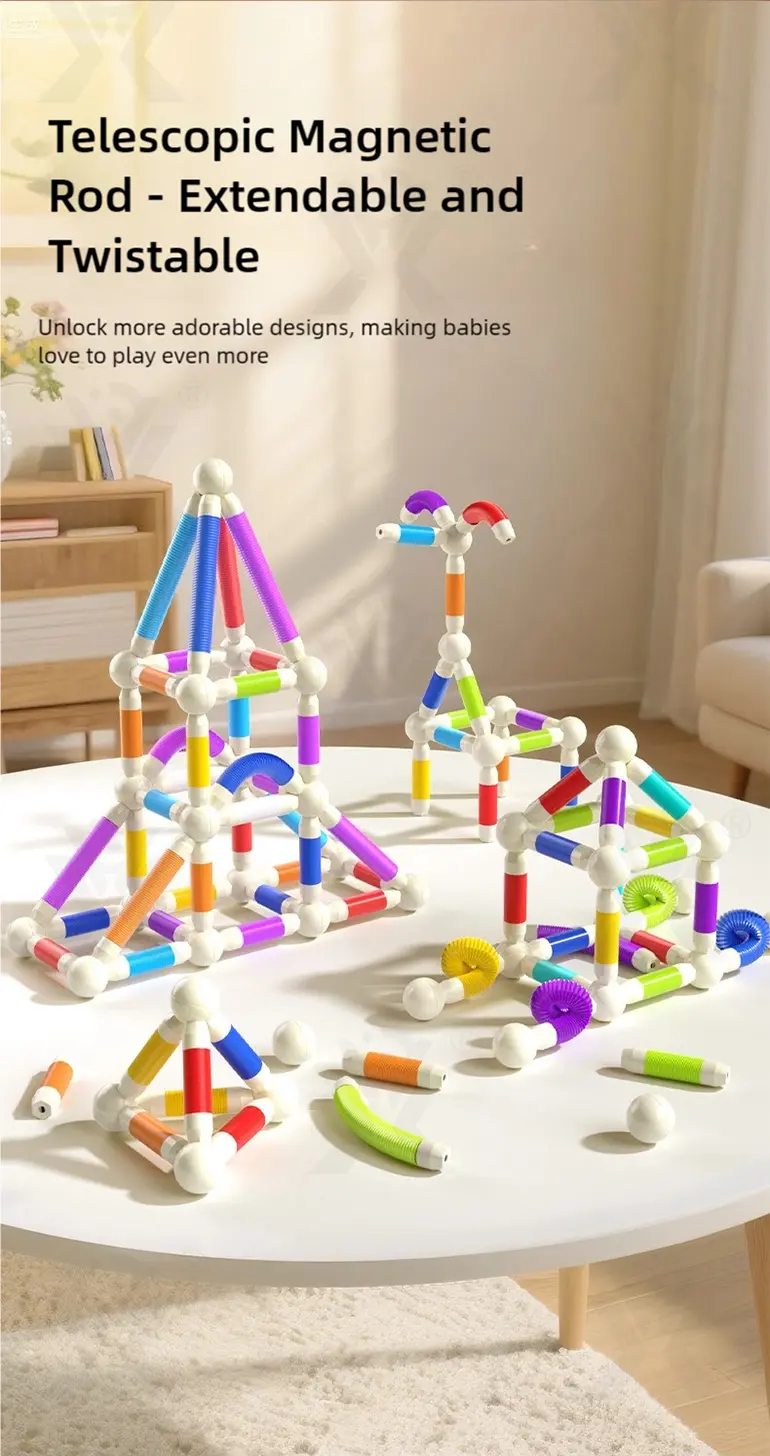 Wholesale telescopic magnetic rod toy. Our telescopic magnetic rods can be rotated 720°! Within an extendable design and a strong magnet, it is capable of constructing a stable 2D/3D building. This STEM toy can benefit the creative minds of kids. Bulk procurement supported. Place an order now!