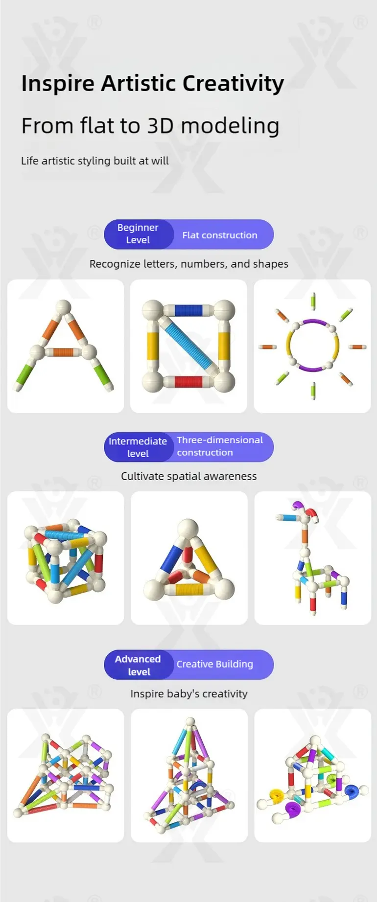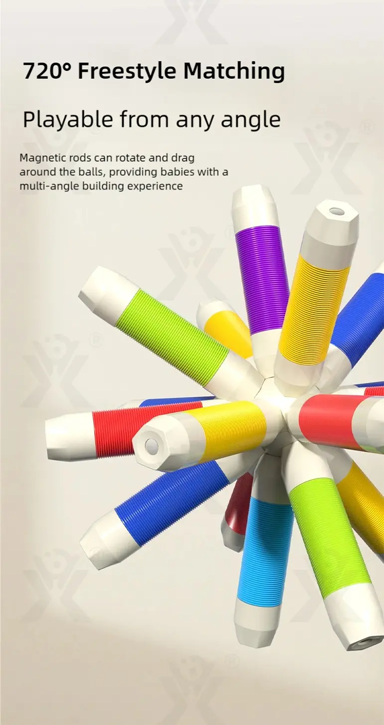 - 720° Multi-Angle Free Building: Magnetic rods rotate around balls for all-angle construction and spatial experience.