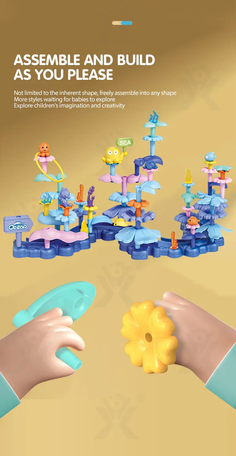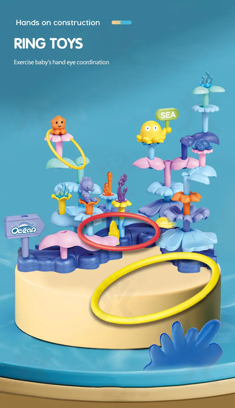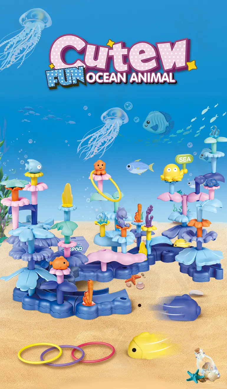 Wholesale ocean garden building blocks. It is an arrangement toy that contains ocean animals, flowers, with rich accessories—builds color & shape cognition, fine motor skills & parent-child bonding.