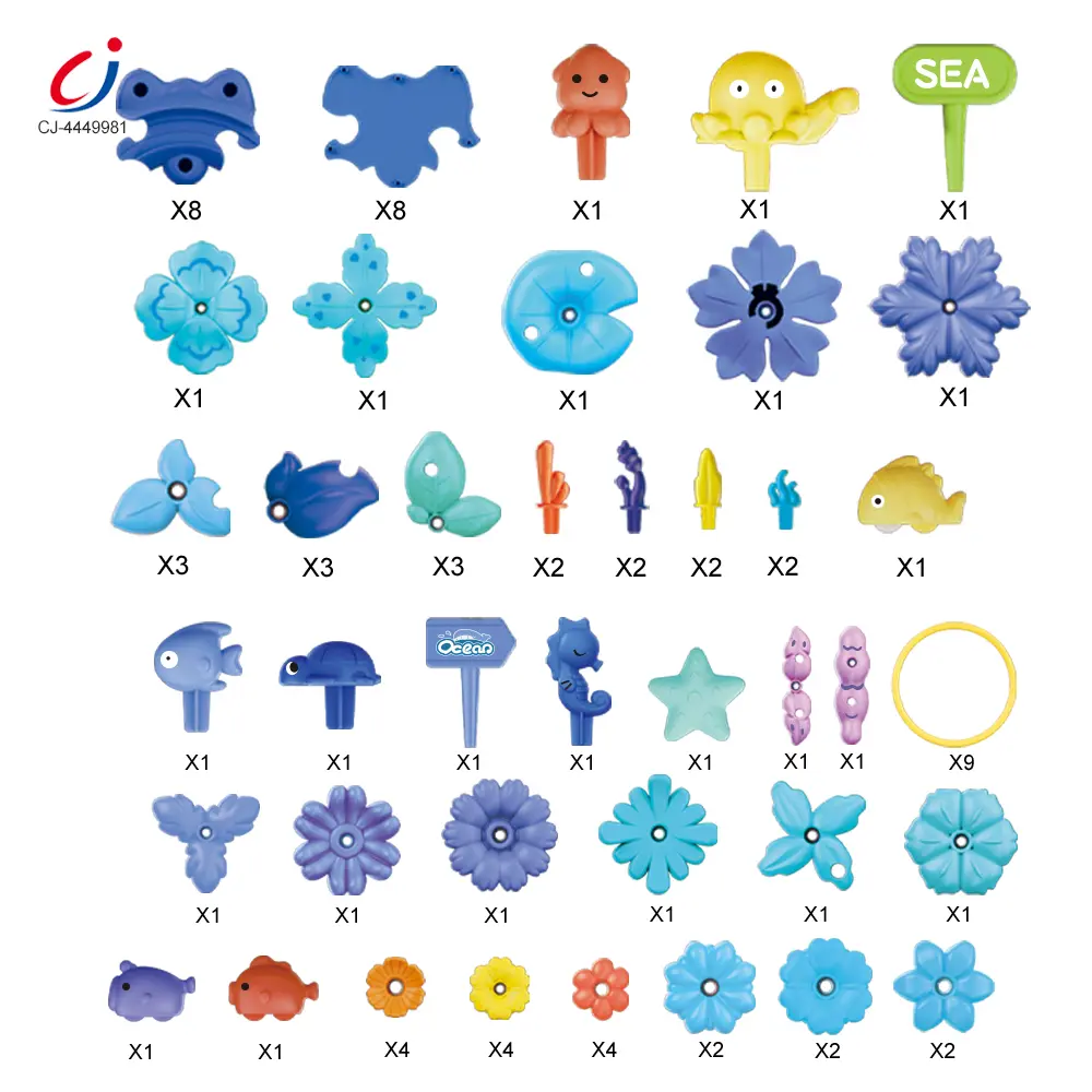 The set includes a wide variety of accessories—sea animals, flowers, and decorative pieces. Children can mix and match different colors and shapes to create unique flower arrangements. This enriches their visual stimulation and helps develop color recognition and shape differentiation skills. -