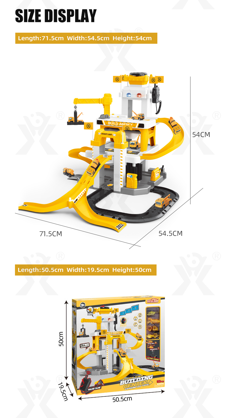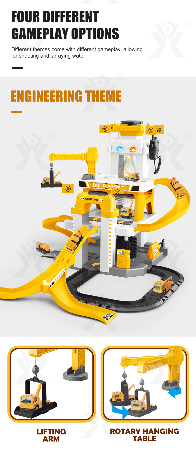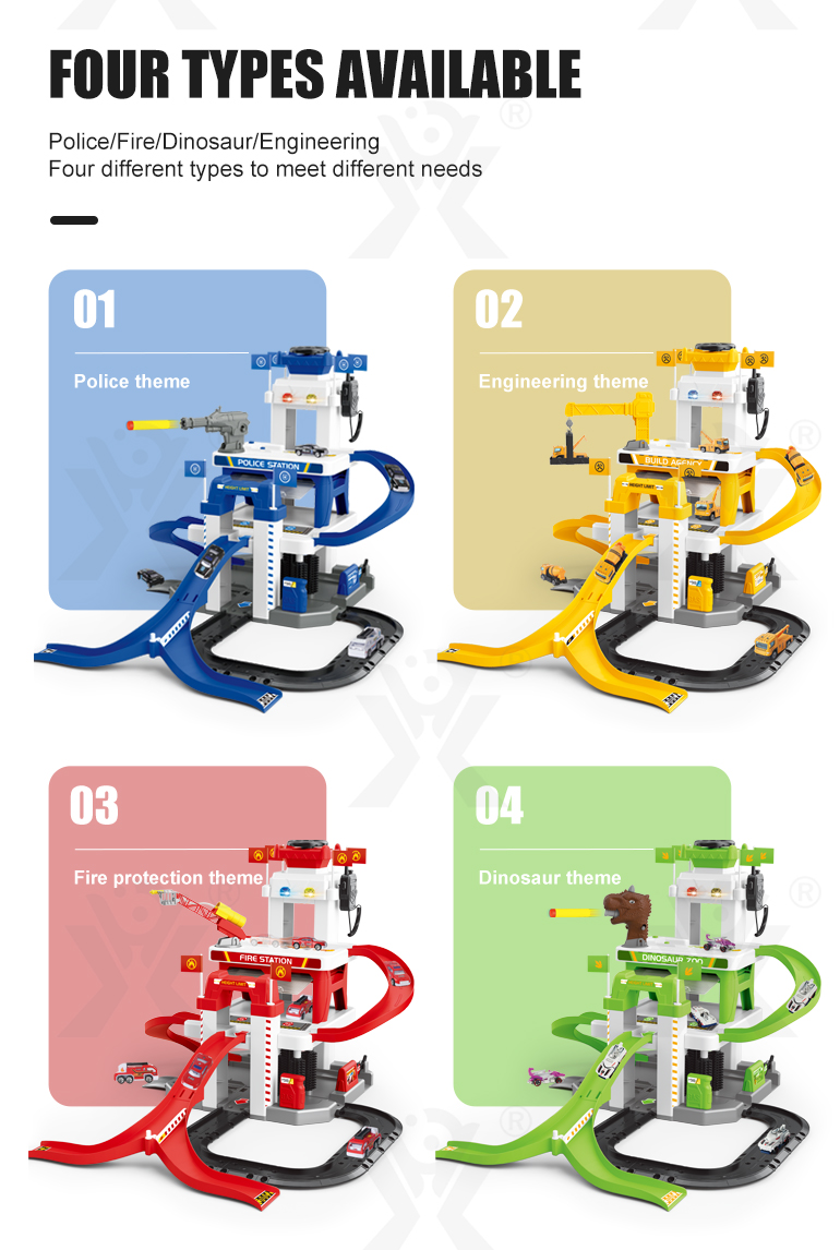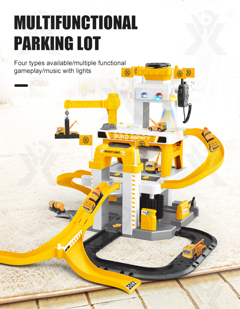 Wholesale parking lot toy! This multi-functional parking lot toy inspires imagination and role-play with four themes, sound/light effects, and interactive features.