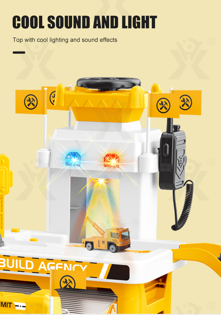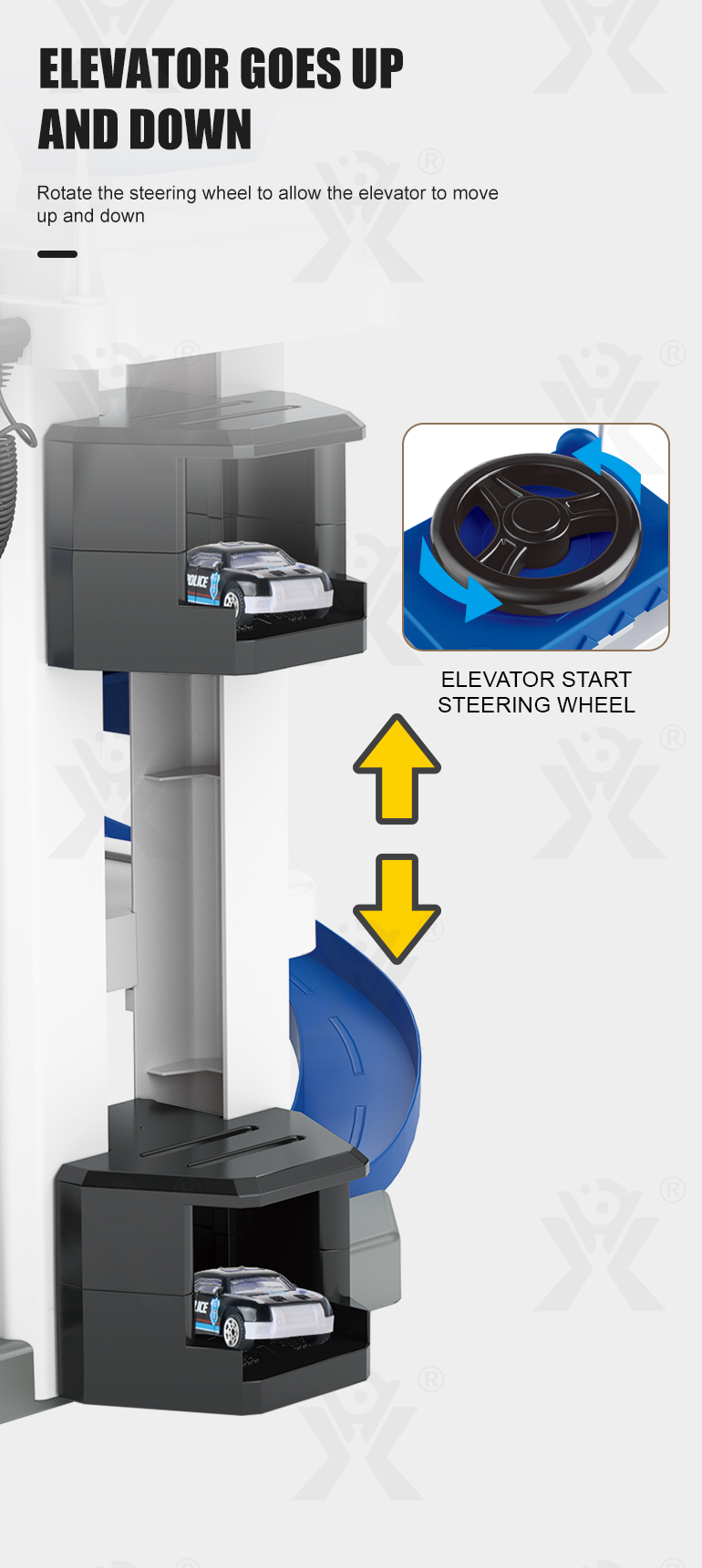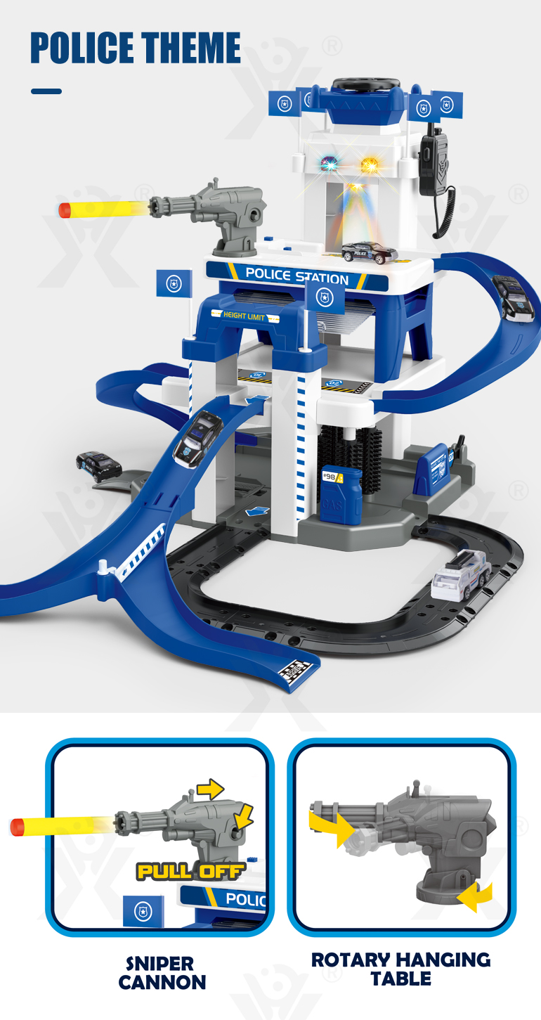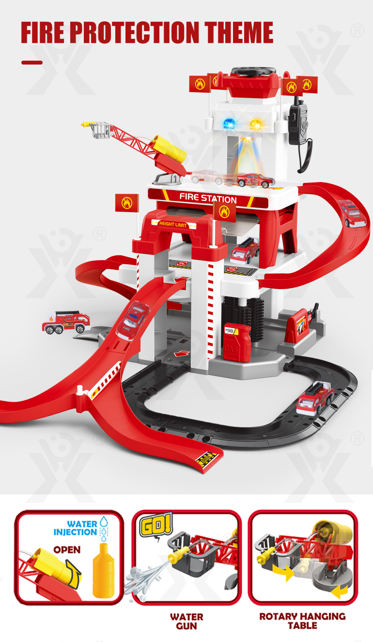 Wholesale parking lot toy! This multi-functional parking lot toy inspires imagination and role-play with four themes, sound/light effects, and interactive features.