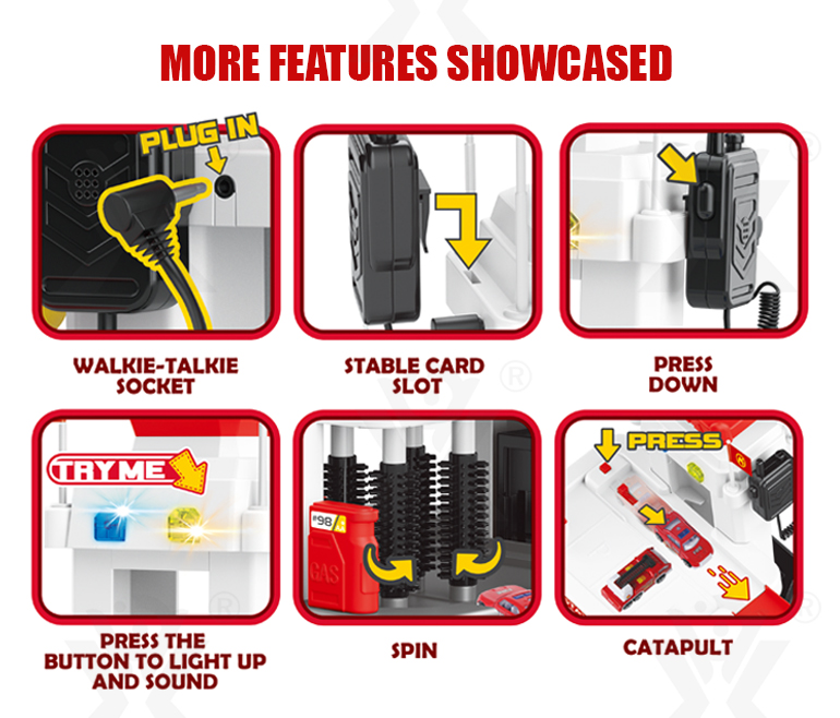 - Theme-Specific Functions: Our parking lot toy includes shooting, water injection, lifting arms, and rotating features for diverse gameplay.