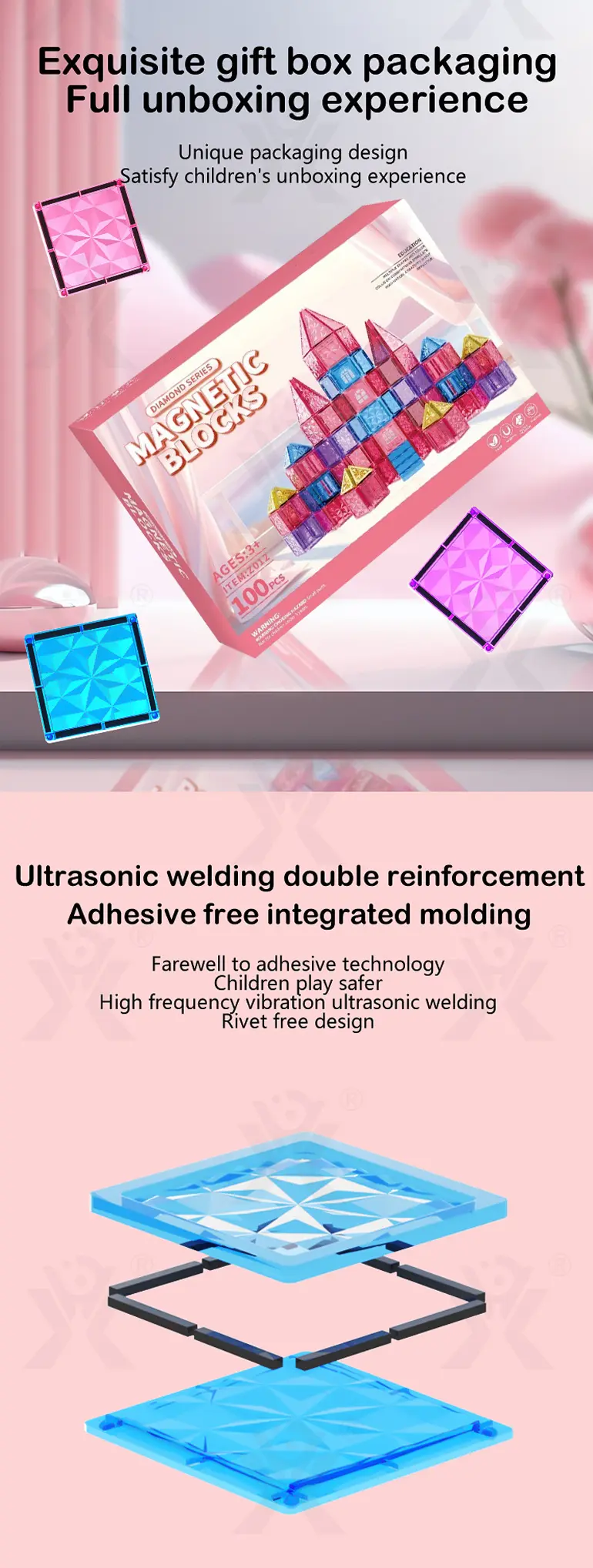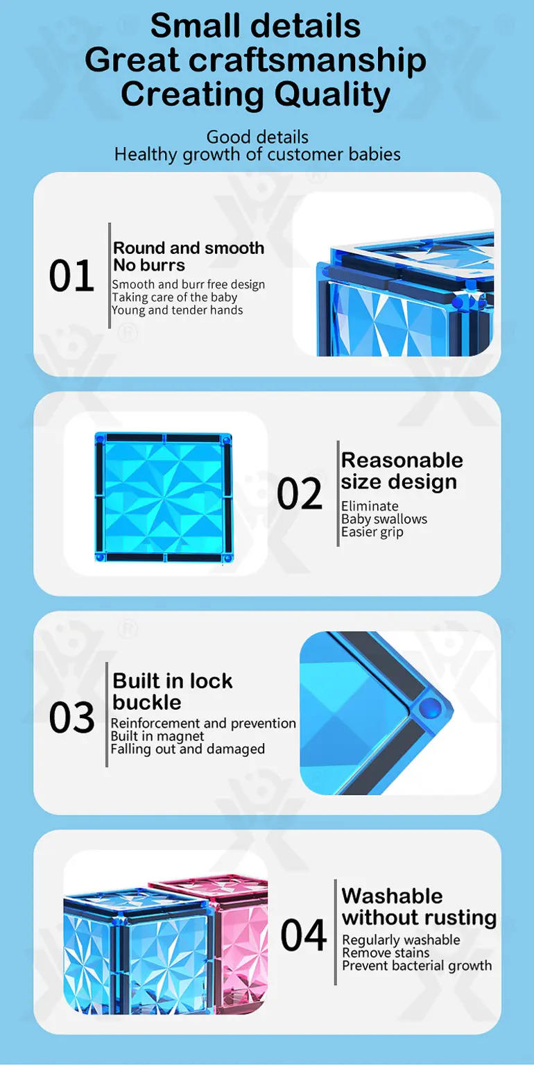 - High Transparency & Strong Magnetic Visual Experience: High-transparency material with pure and pink colors, diamond-cut surface reflects light, strong magnetism prevents scattering, and enhances play fun.