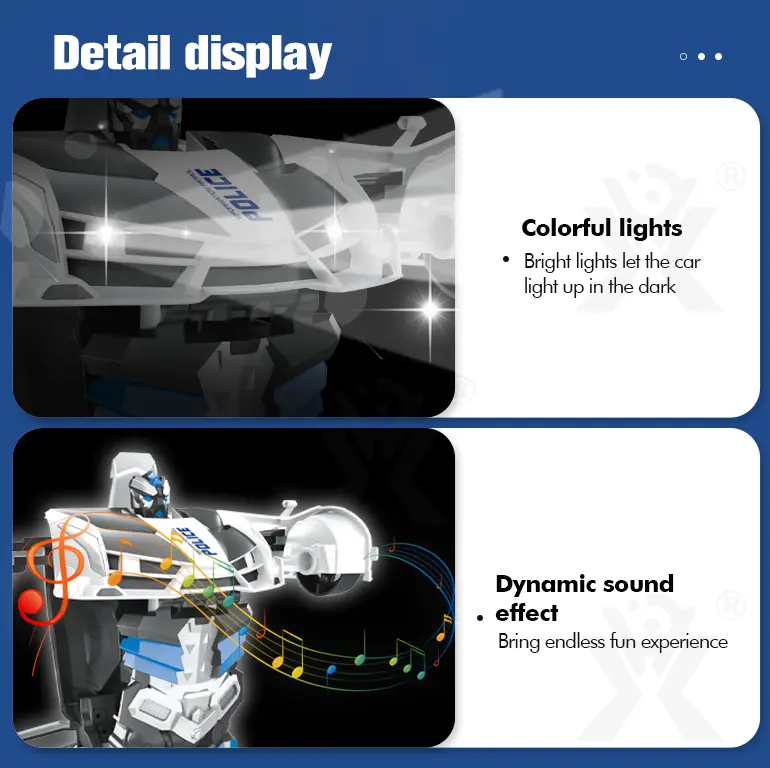 - One-Key Smart Transformation for Cool Mode Switch: With one button press, it transforms between a police car and a cool robot. Simple operation delivers maximum fun, igniting heroic dreams.