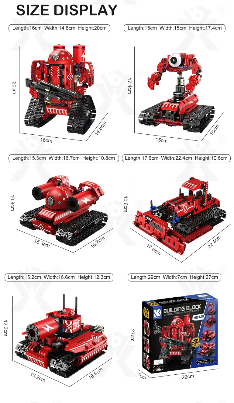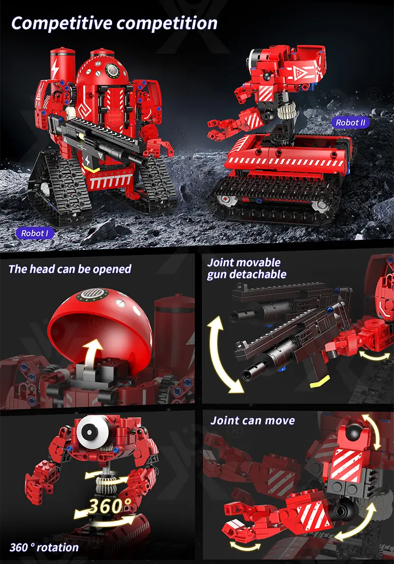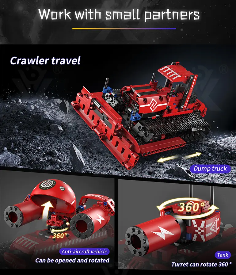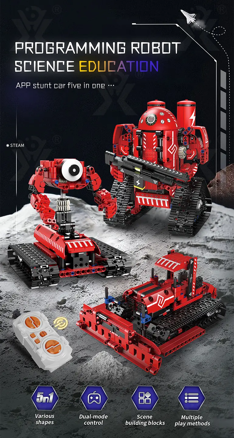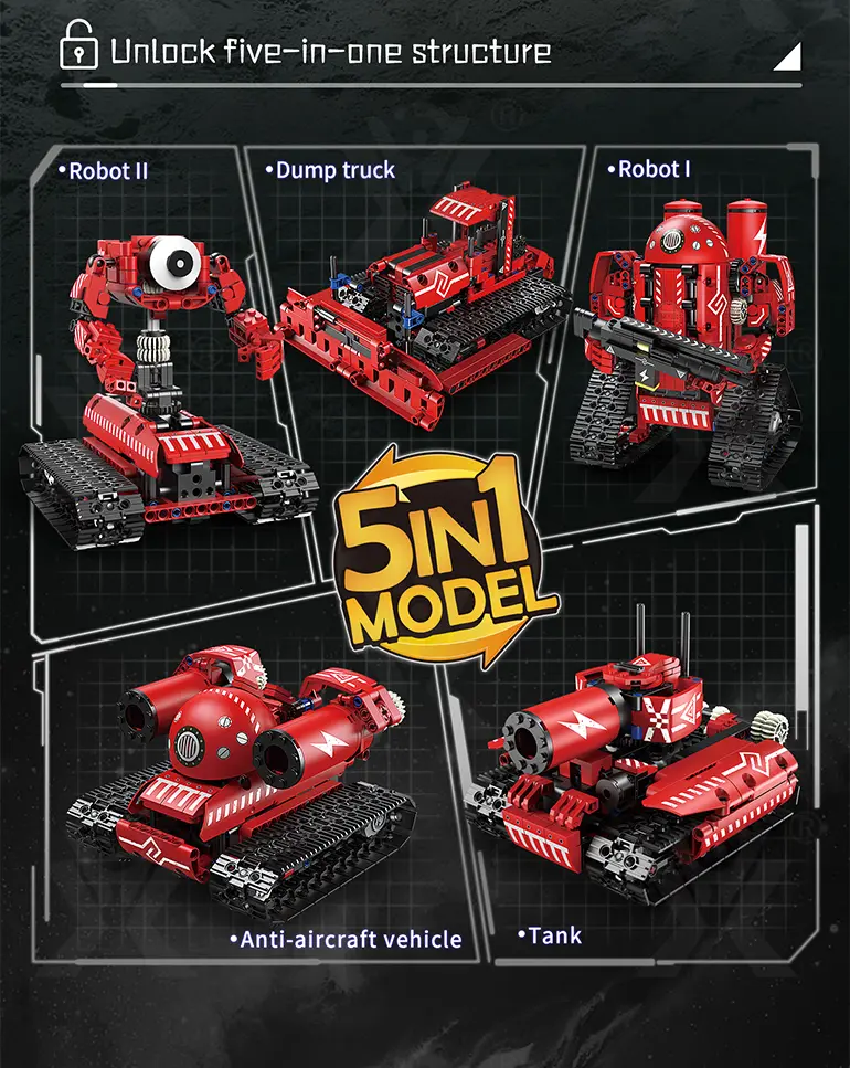 - 5-in-1 Transformable Building: This programming electric robot has 5 models: robot, dump truck, anti-aircraft vehicle, tank, etc., stimulating creativity and hands-on skills.