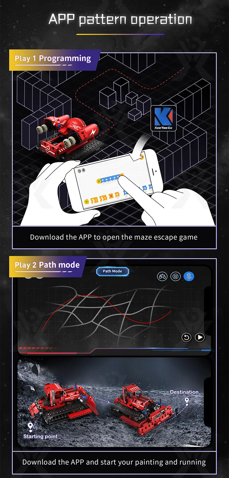 - APP Programming for STEAM Education: Graphical programming with maze escape, path mode, gravity sensing, developing logical thinking, and coding skills.