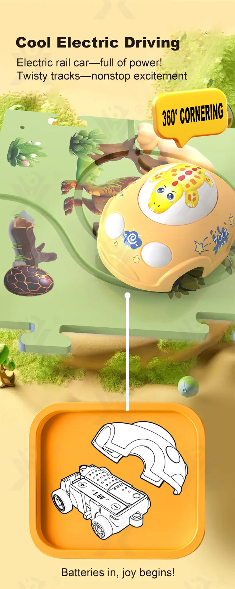 - Flexible 360-degree steering design: Tracks of our puzzle racer toy support 360° all-direction cornering, enabling flexible steering and creating diverse route options.
