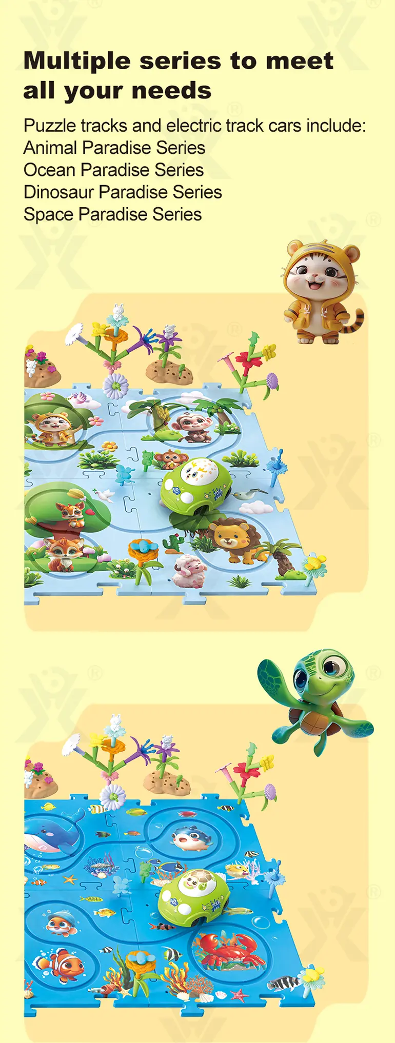 - Multi-theme series selection: Themes like Animal, Ocean, Dinosaur, and Space Paradise series of our puzzle racer toy meet various preferences and needs.