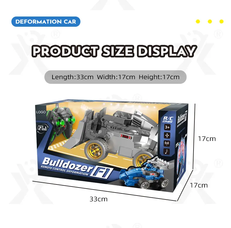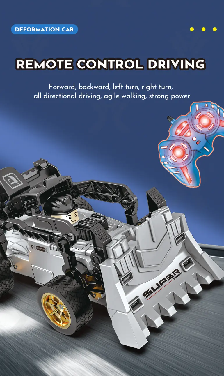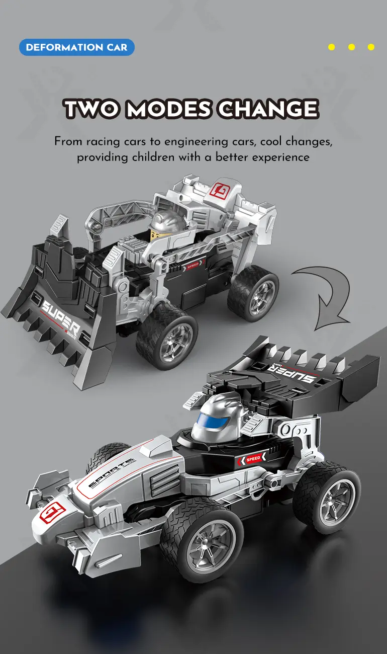This RC deformation car toy can transform from a racing car to an engineering bulldozer, offering double the play value and creative scenarios.