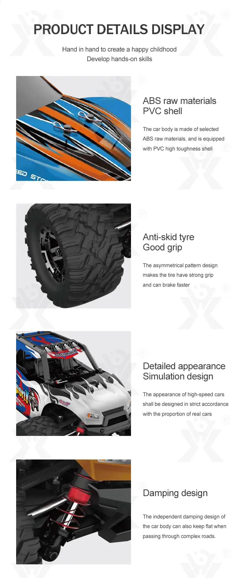 Equipped with a high-speed motor and speed control gear for powerful, long-lasting performance, letting players drive longer without interruption.