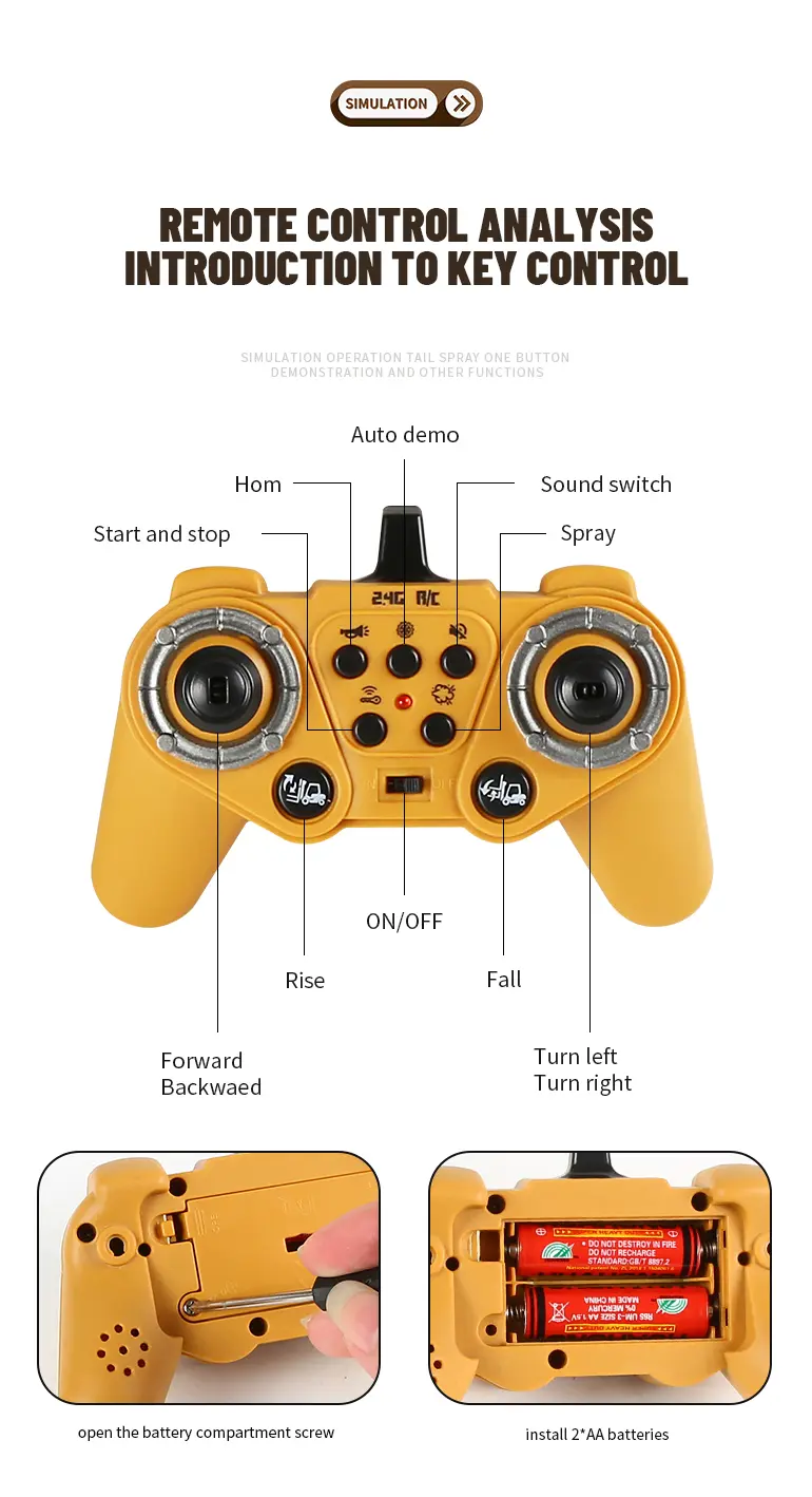 Press a button to release simulated mist from the rear, recreating heavy machinery operation. This realistic effect enhances role-play immersion. -