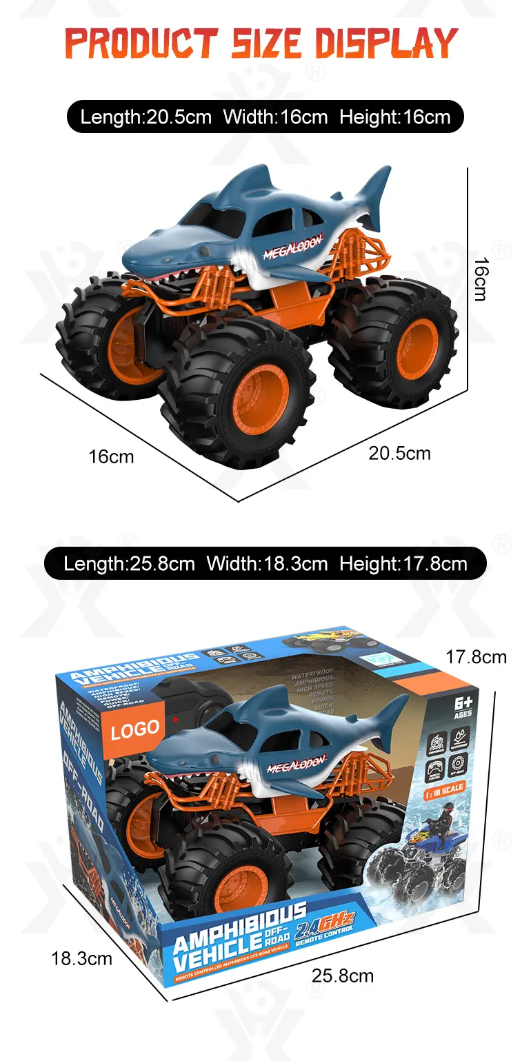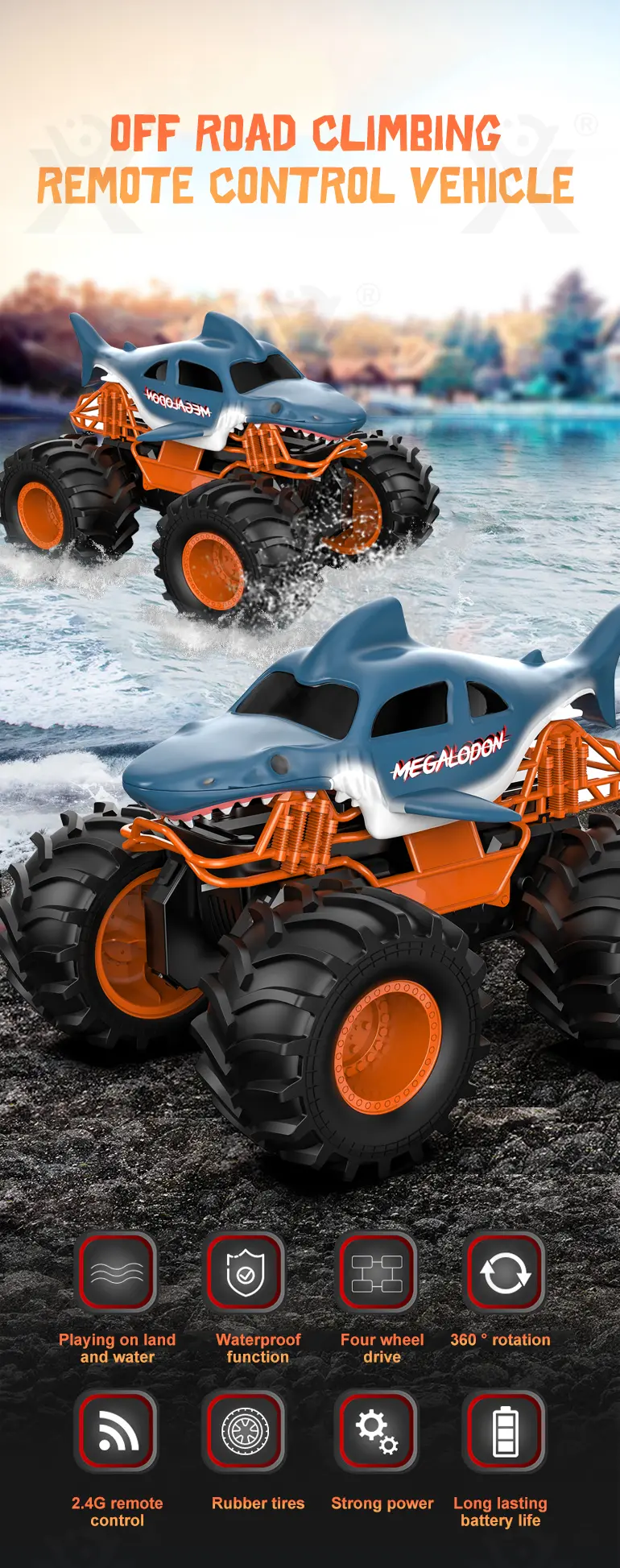 Wholesale shark bigfoot amphibious vehicle toy, RC car toy! Powerful motor allows it to climb a 45° slope, with all-terrain rubber tires. Conquers land & water for double the driving excitement. Supported bulk order. Contact us now!
