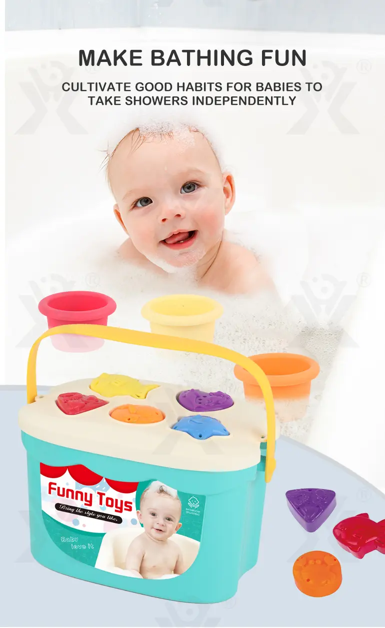 Wholesale Baby Bath Toy Silicone Stackable with Storage & Shape Pairing Play