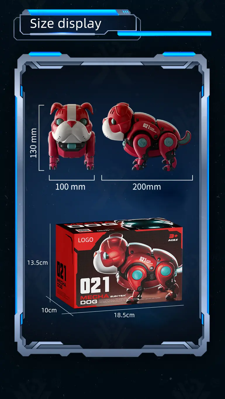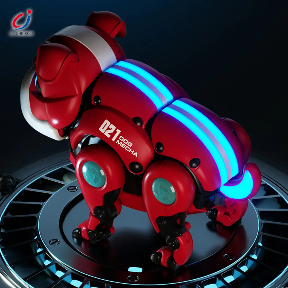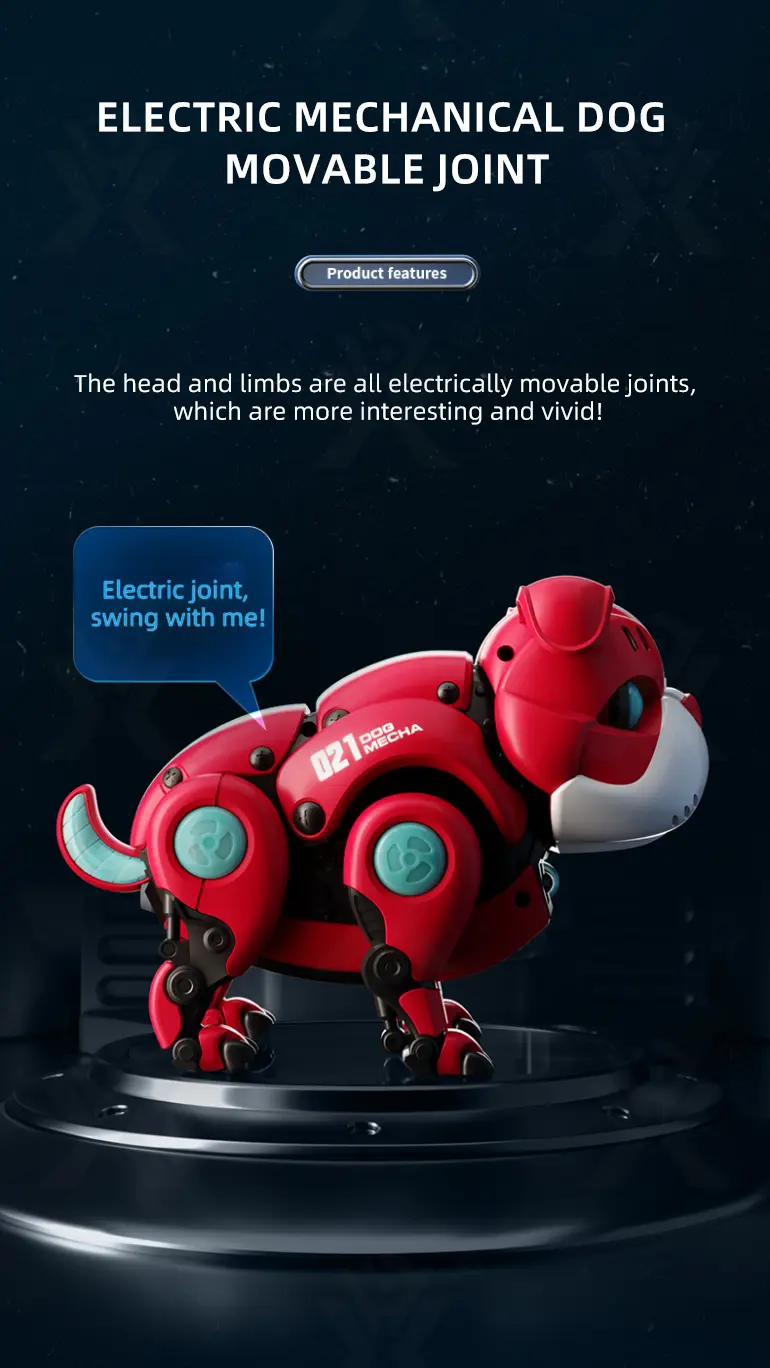 Wholesale smart robot dog toy. It is a mechanical, smart robot dog toy with voice-activated breathing lamp, music sync, robot armor modeling, and clap/sound interaction.