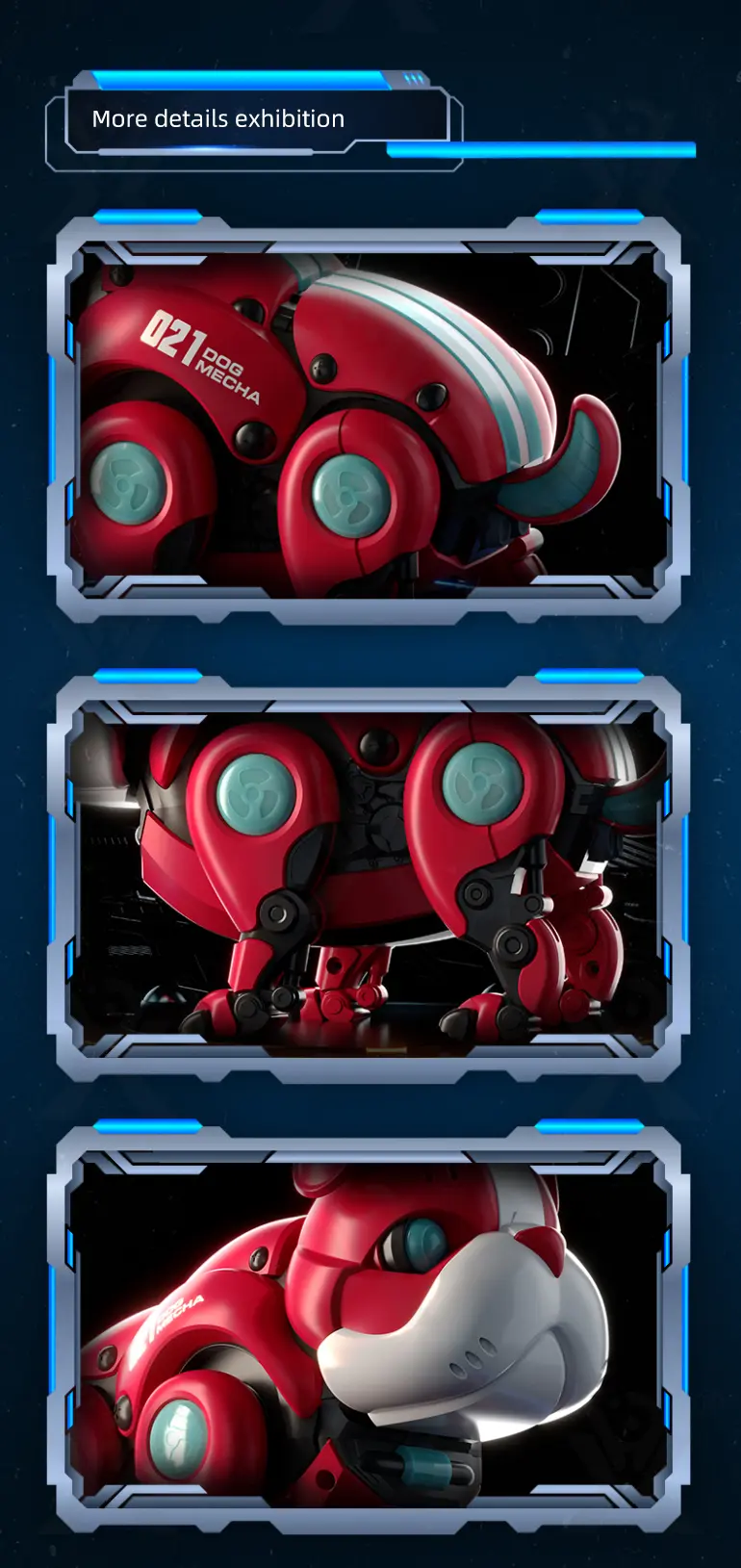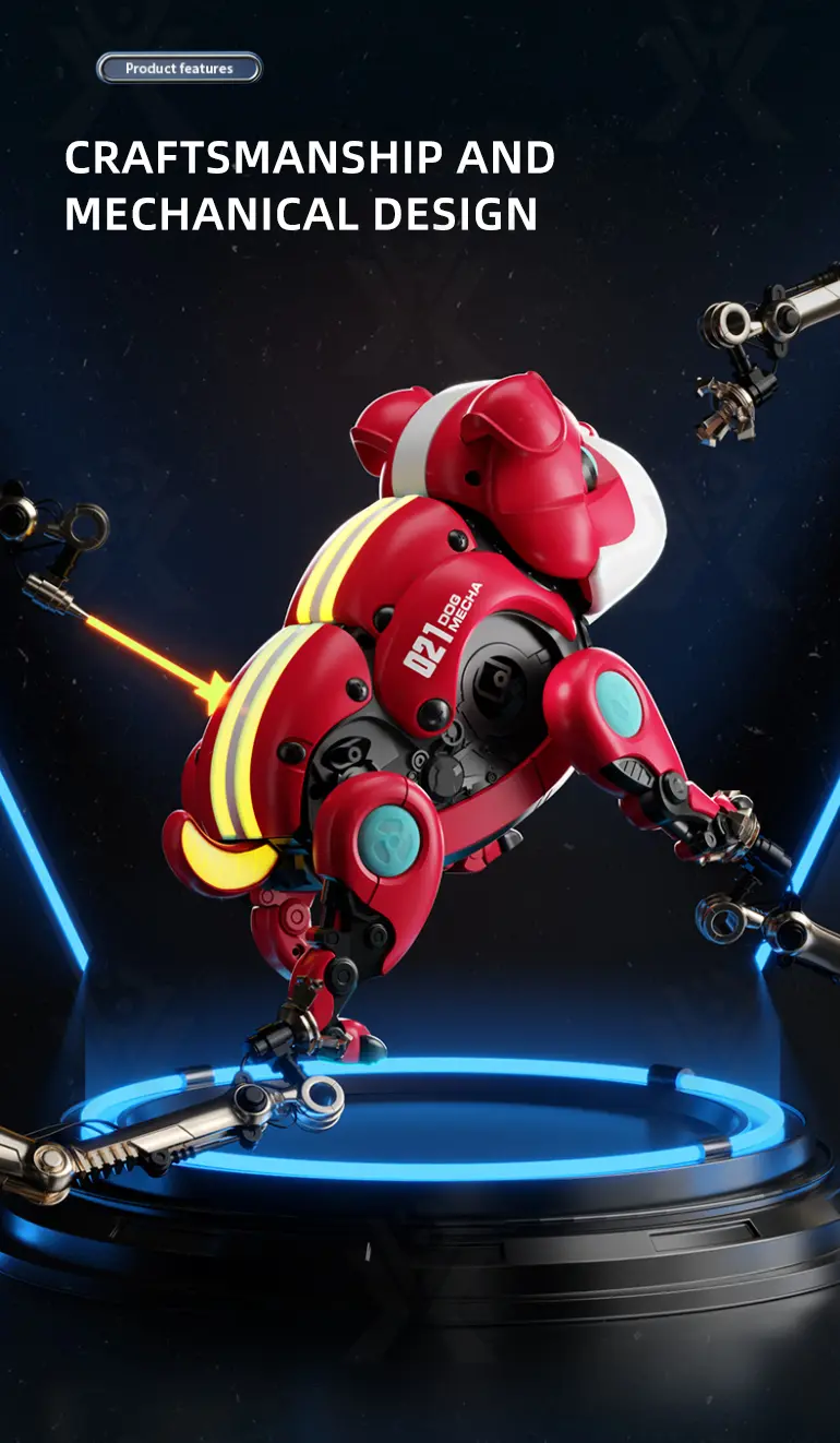The toy is designed with a futuristic robot armor look, combining mechanical aesthetics with pet-like appeal.