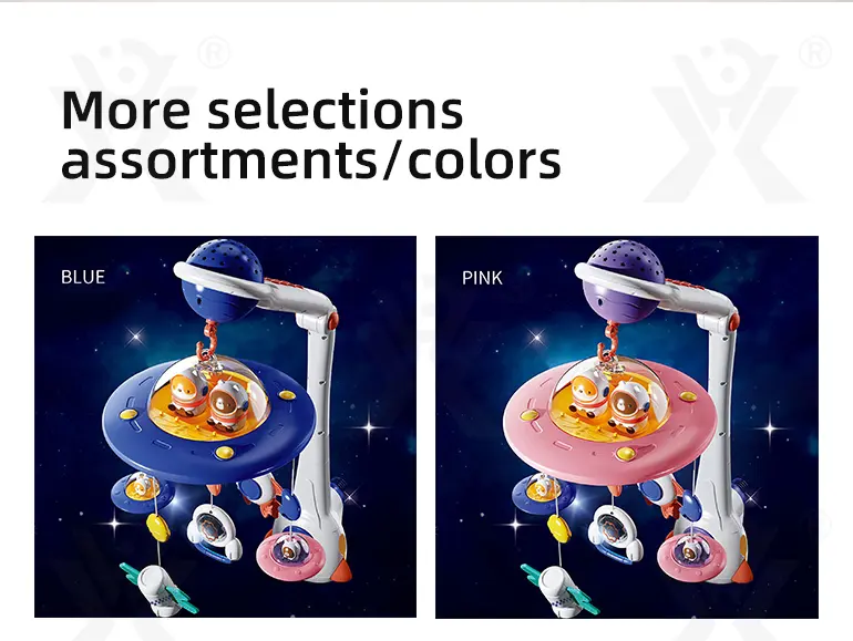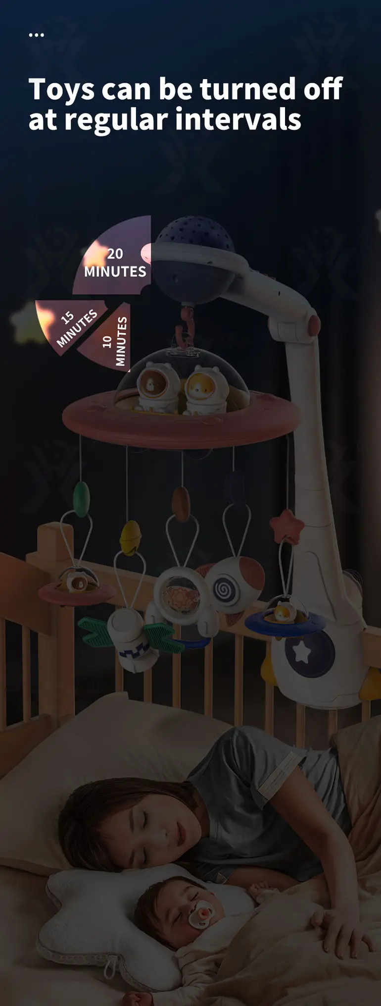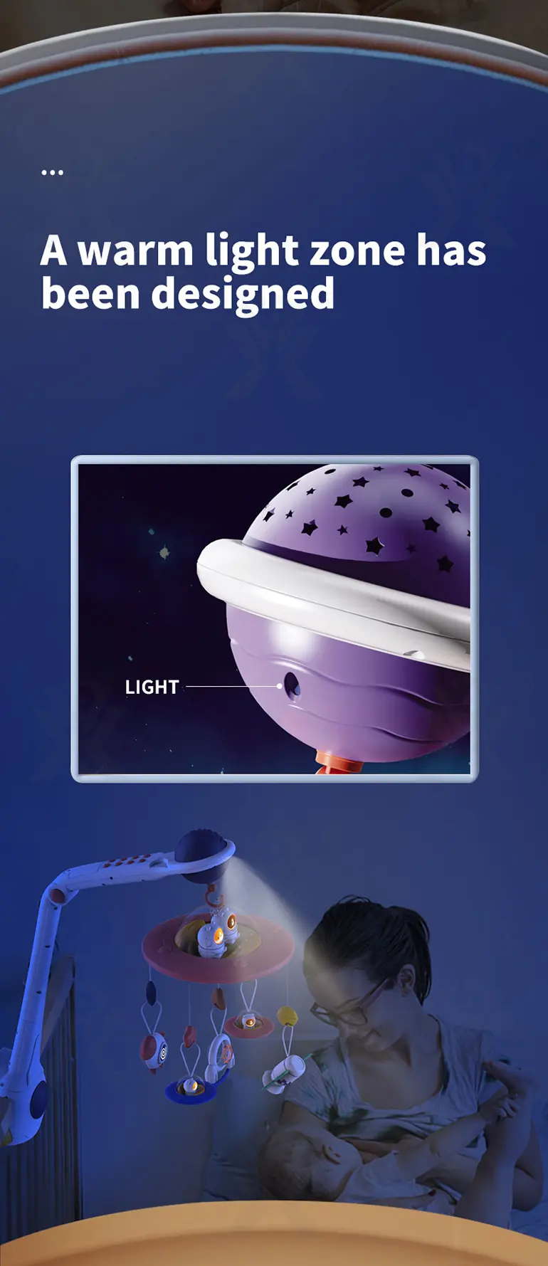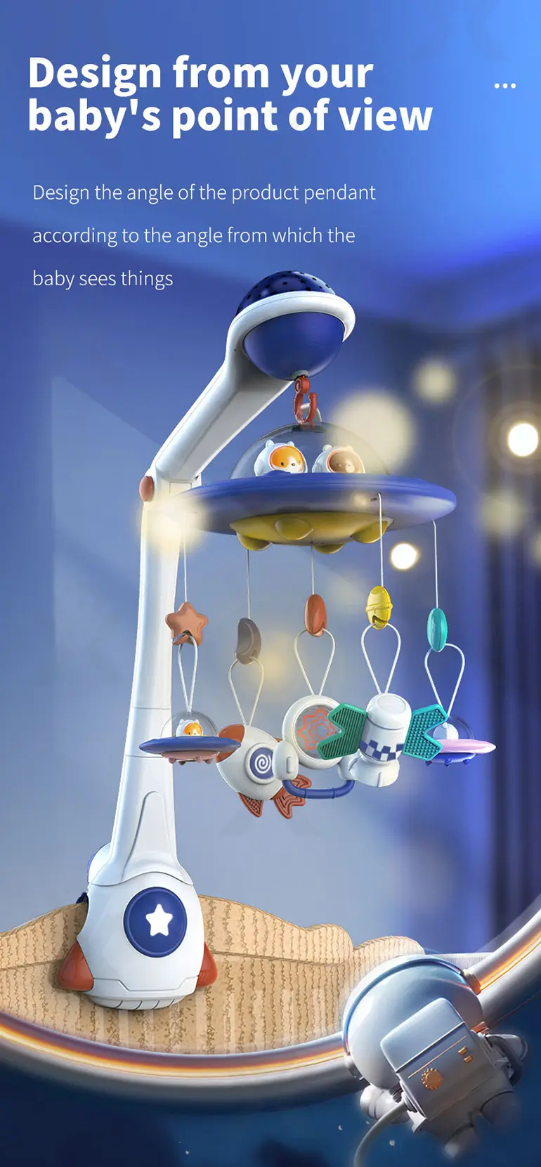 Wholesale Space-themed bed bell with starry projection & 8 soothing functions! 360° rotating pendant, timer shut-off, perfect baby gift. Supporting bulk procurement. Get a quote now!