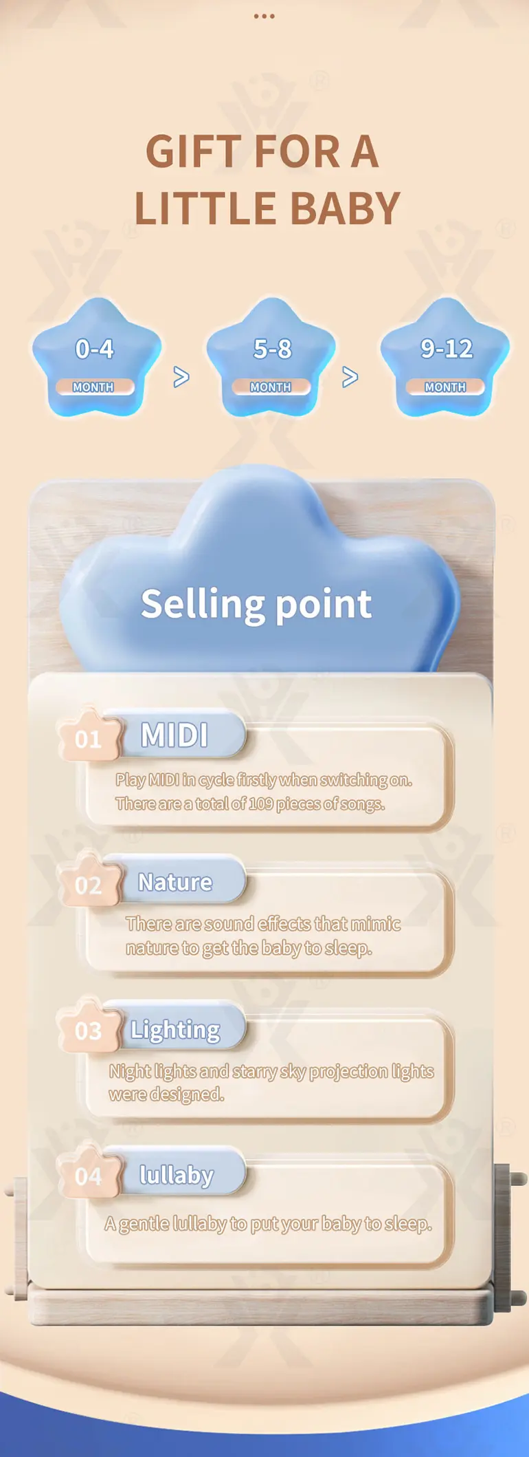 - 360° Slow-Rotating Pendant: Pendant rotates 360° slowly at healing speed, designed from the baby’s viewing angle.