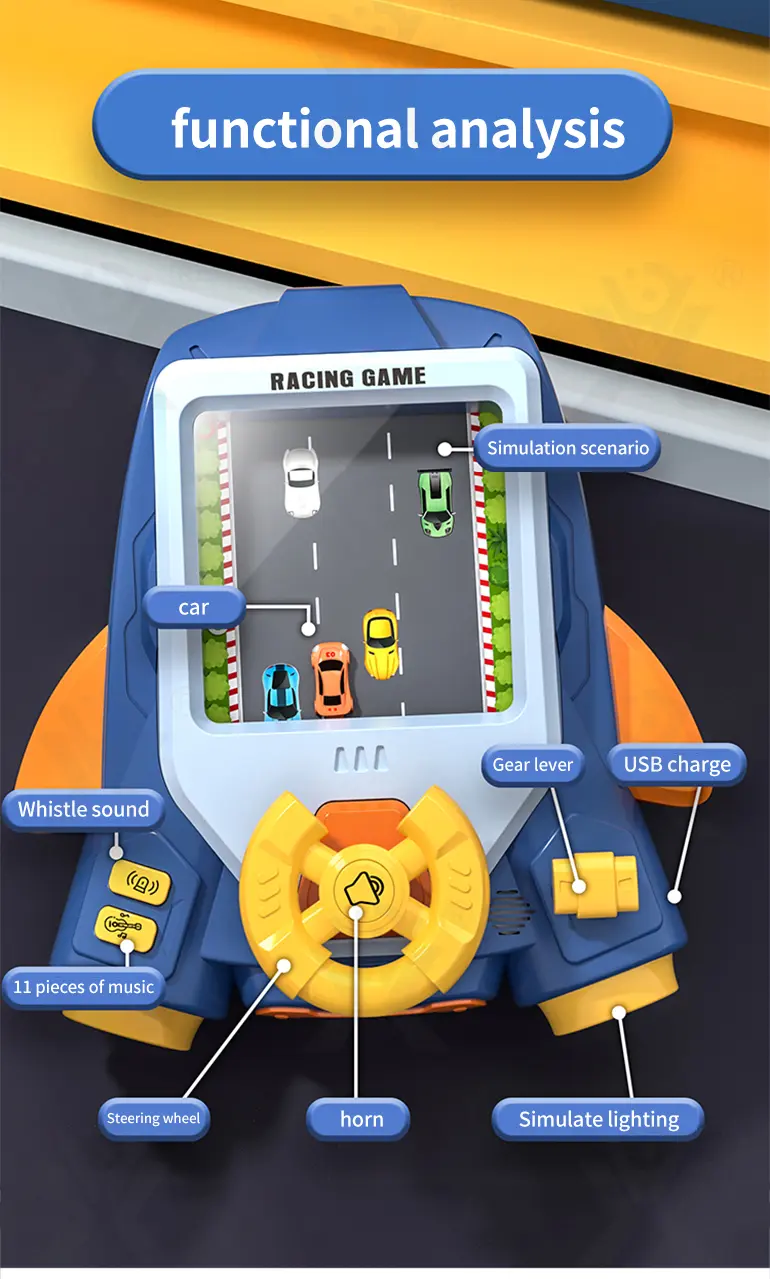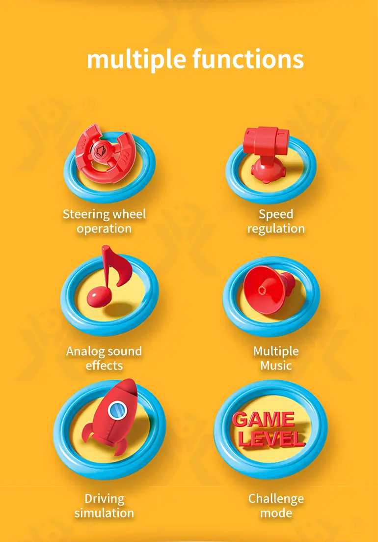 - 11 Classic Sound Effects: Our space car game machine toy includes a police siren and traffic sounds.