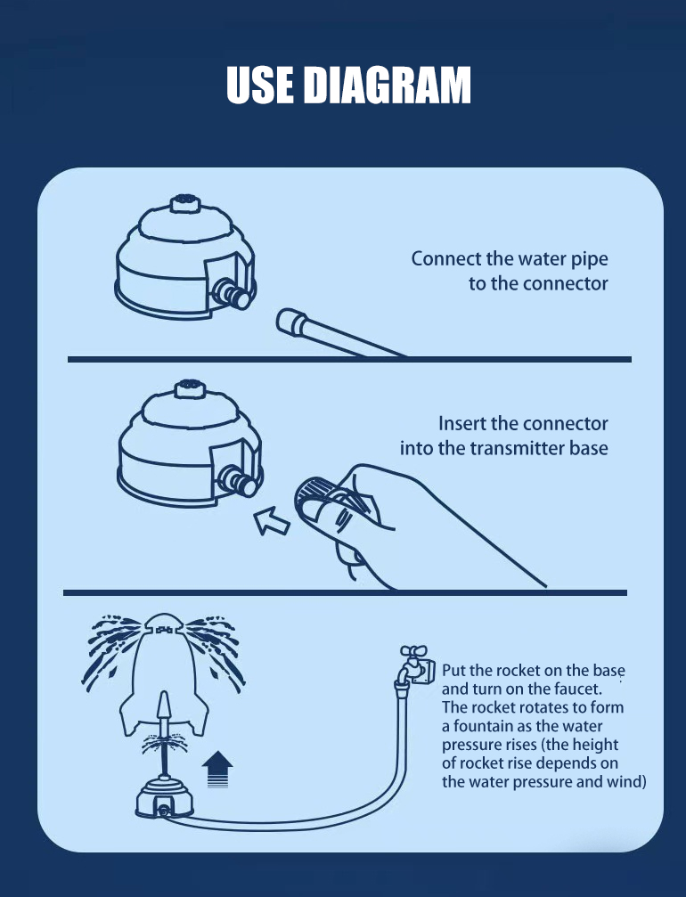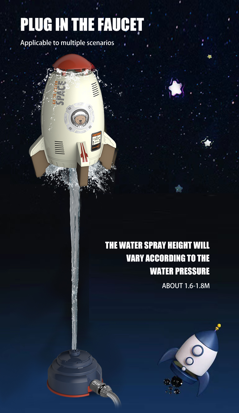 - Fun Water Spray Function: This funny technology rocket sprinkler encourages outdoor active play and adds excitement to water games.