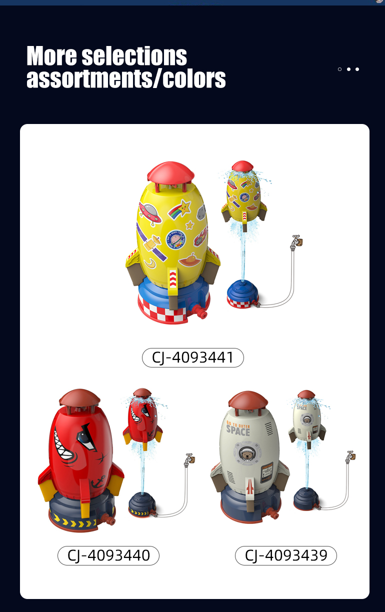 Wholesale technology rocket sprinkler toy for summer garden play. This technology rocket sprinkler offers safe and exciting outdoor water play with EVA foam protection and durable ABS material.