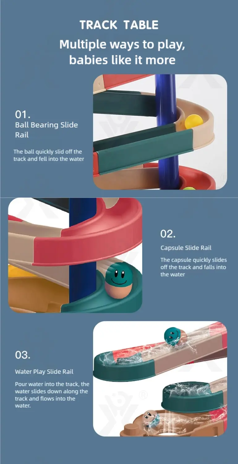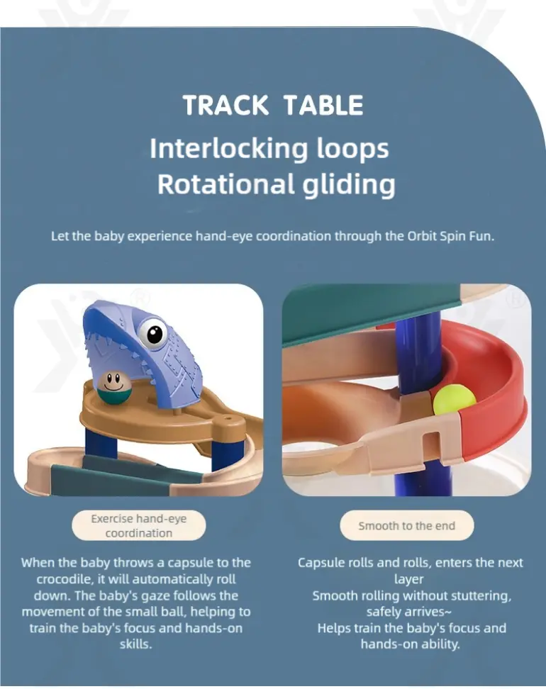 - Hand-Eye Coordination & Focus Training: Ball rolling tracks are beneficial for visual tracking and concentration as babies follow the movement.