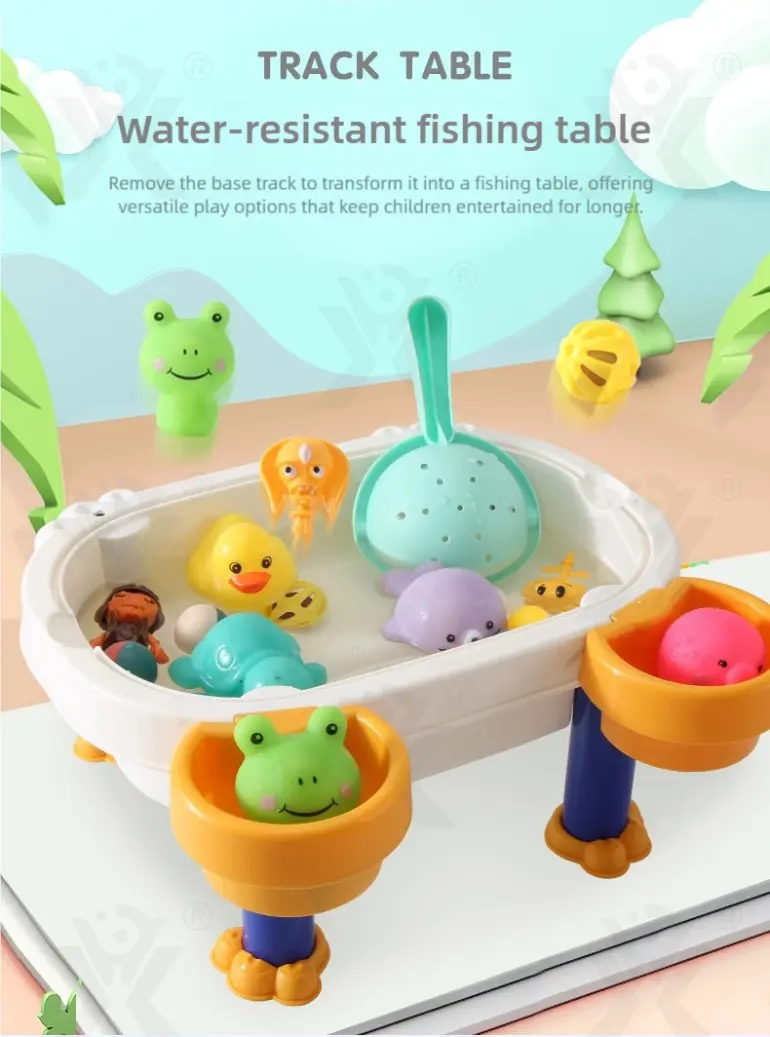 - Multi-Functional Track Table Design: Functions as both a track table and a fishing pool, versatile play places and options extend engagement.