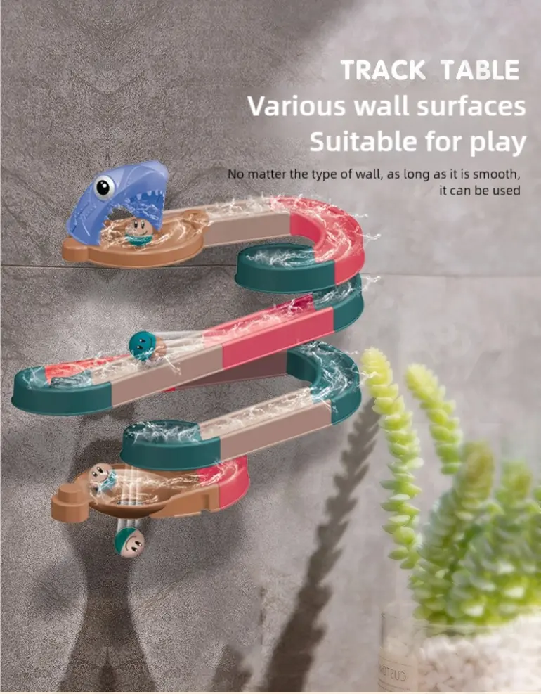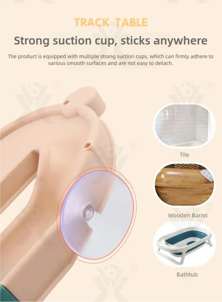 - Strong Suction Cups Fix Anywhere: Multiple strong suction cups of our track building block table adhere firmly to smooth surfaces like tiles and bathtubs.