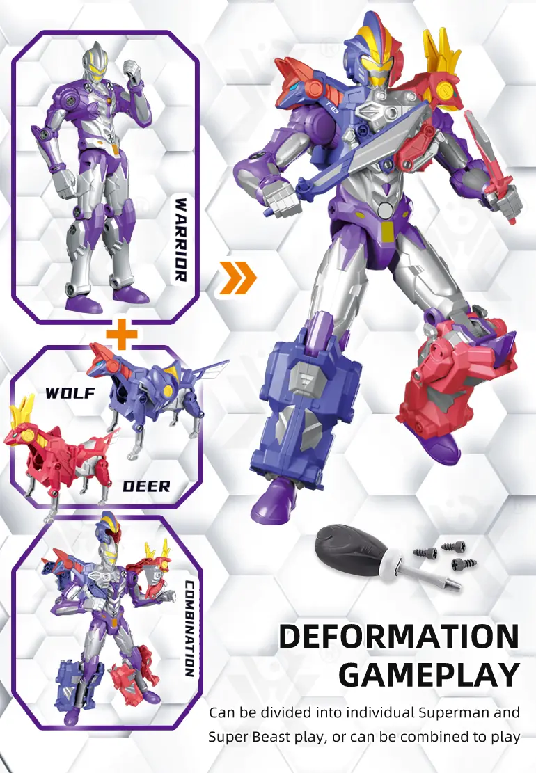 - Dual Man-Beast Modes with Separate/Combine Play: Transforms between a mighty superhero and a cool super beast, with a combined mode. Three forms offer diverse play experiences.