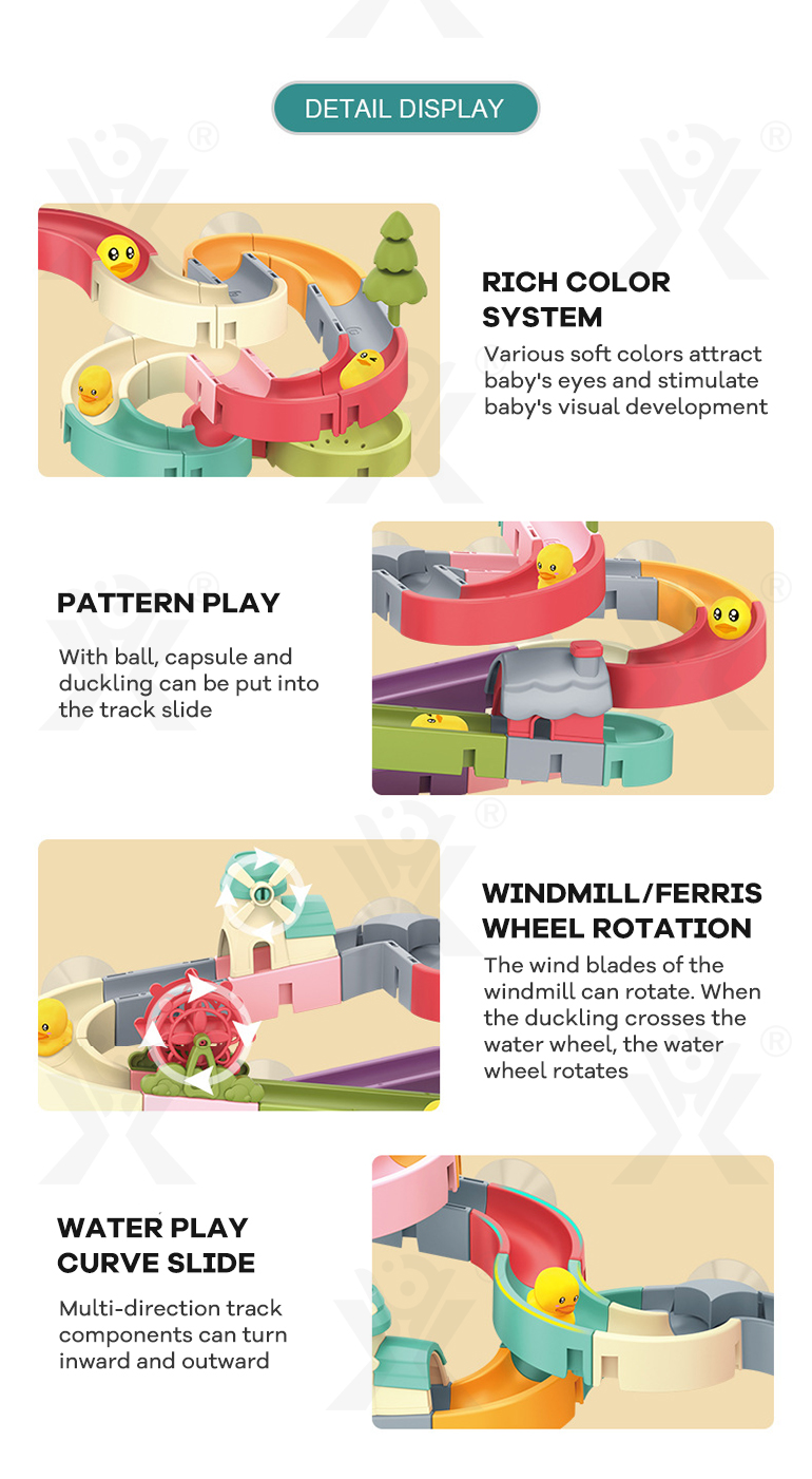 - Multiple Water Play Methods: Our water play track toy makes bath time fun and engaging, helping babies develop positive bathing habits.