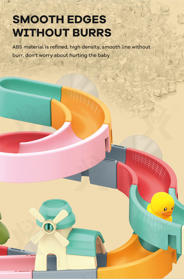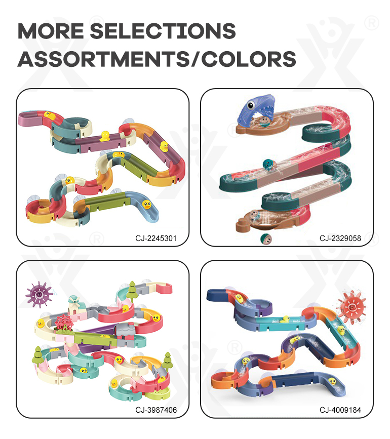 Wholesale water play track toy, able to play in a tub and bathroom. This DIY water play track stimulates creativity and sensory development during safe bath time with diverse water flow features and a strong suction design.