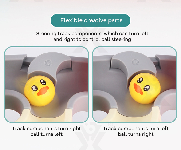 - Flexible Track Components: Steering pieces allow left/right turns for interactive ball control.