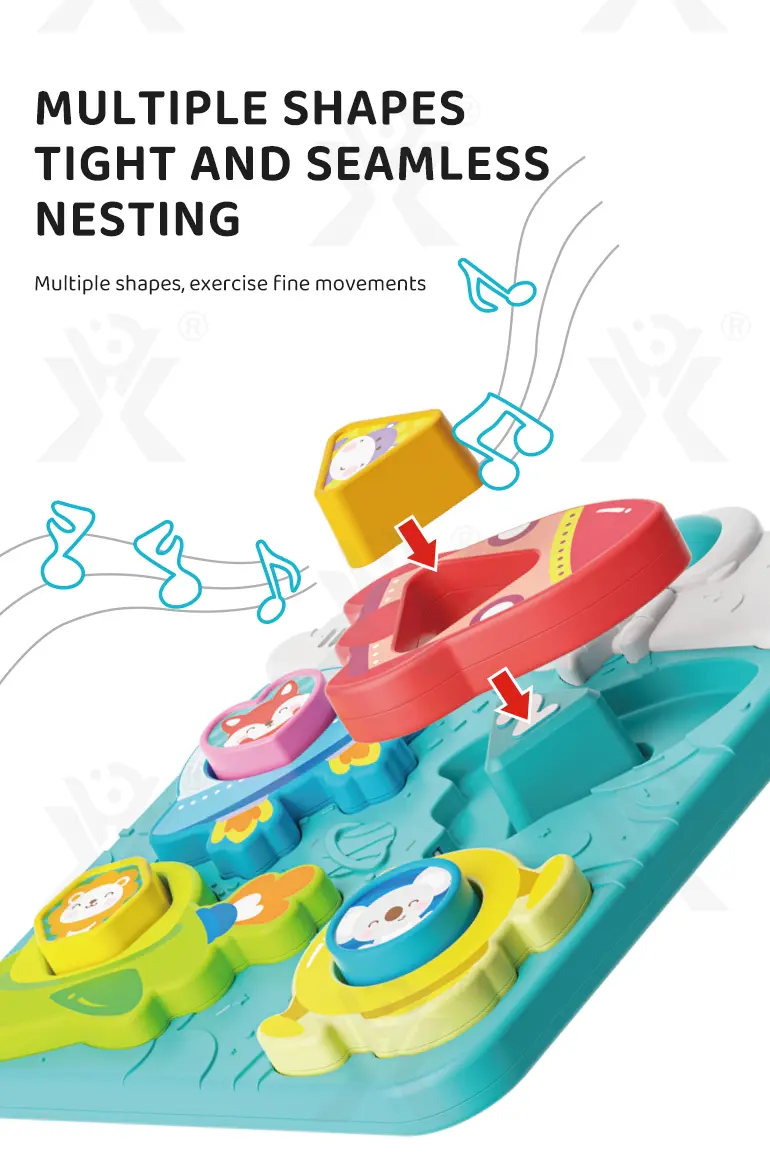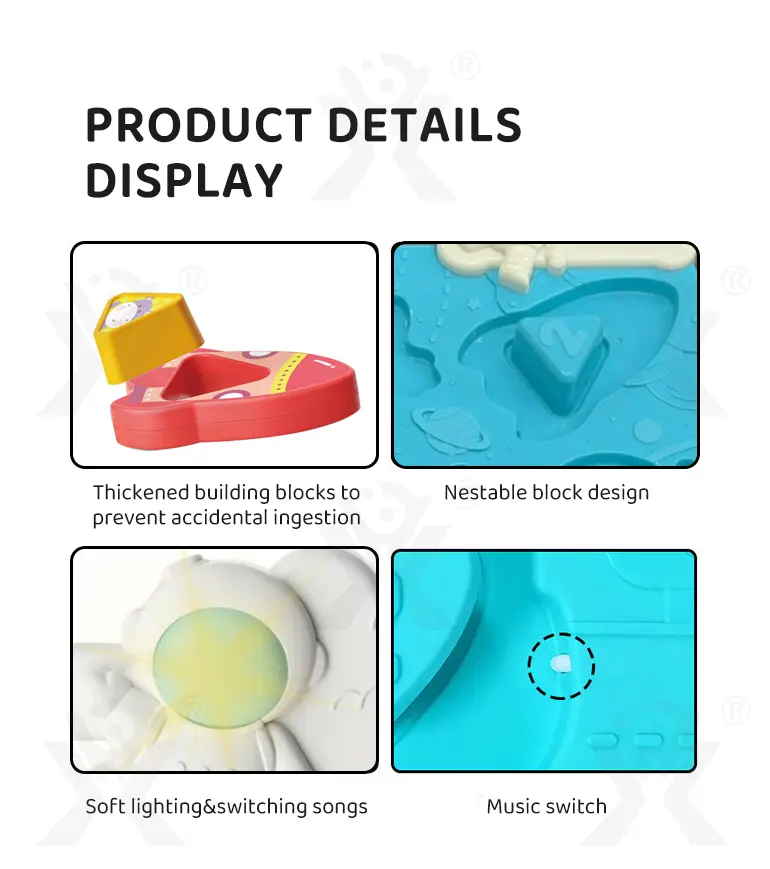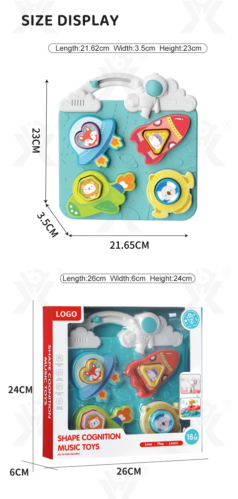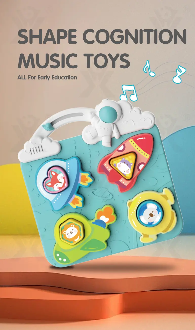 Wholesale shape cognition board, space theme. Our astronaut music shape cognition board toy is equipped with soft lights & sounds! Shape sorting, music switch, and thickened blocks for early education development. Bulk purchase available. Get your quote now!