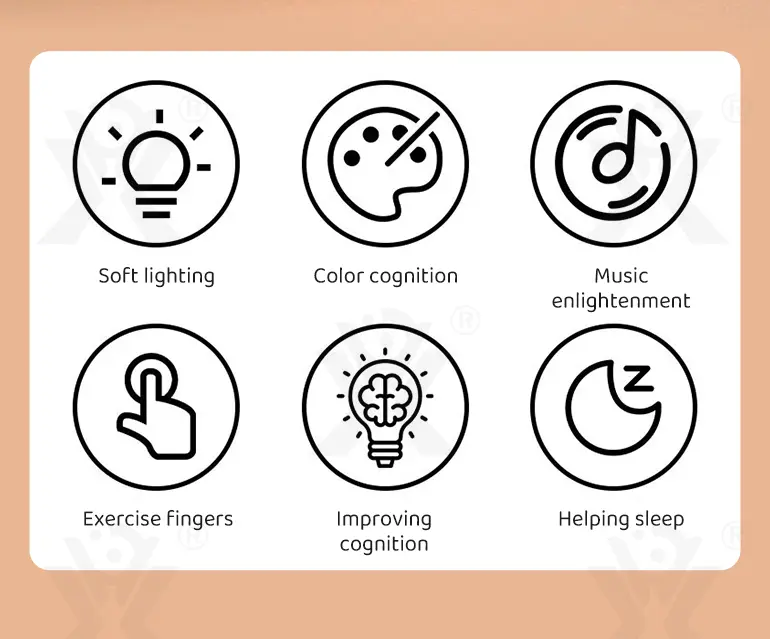 - Soft Lighting Visual Stimulation: Gentle lighting provides visual stimulation while protecting delicate eyesight.