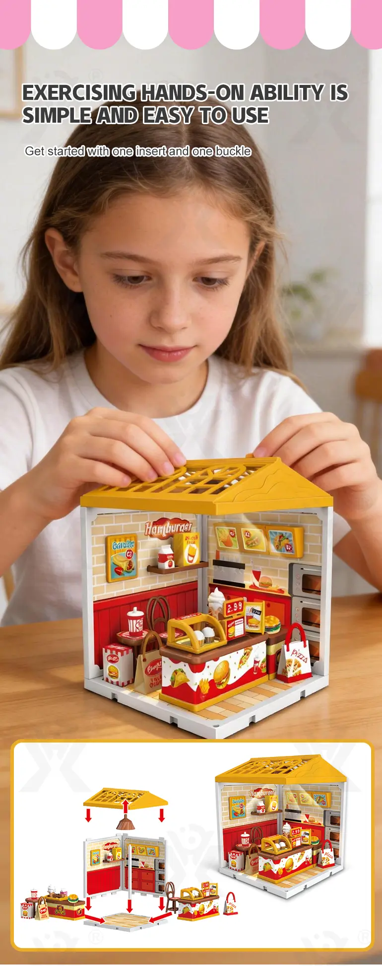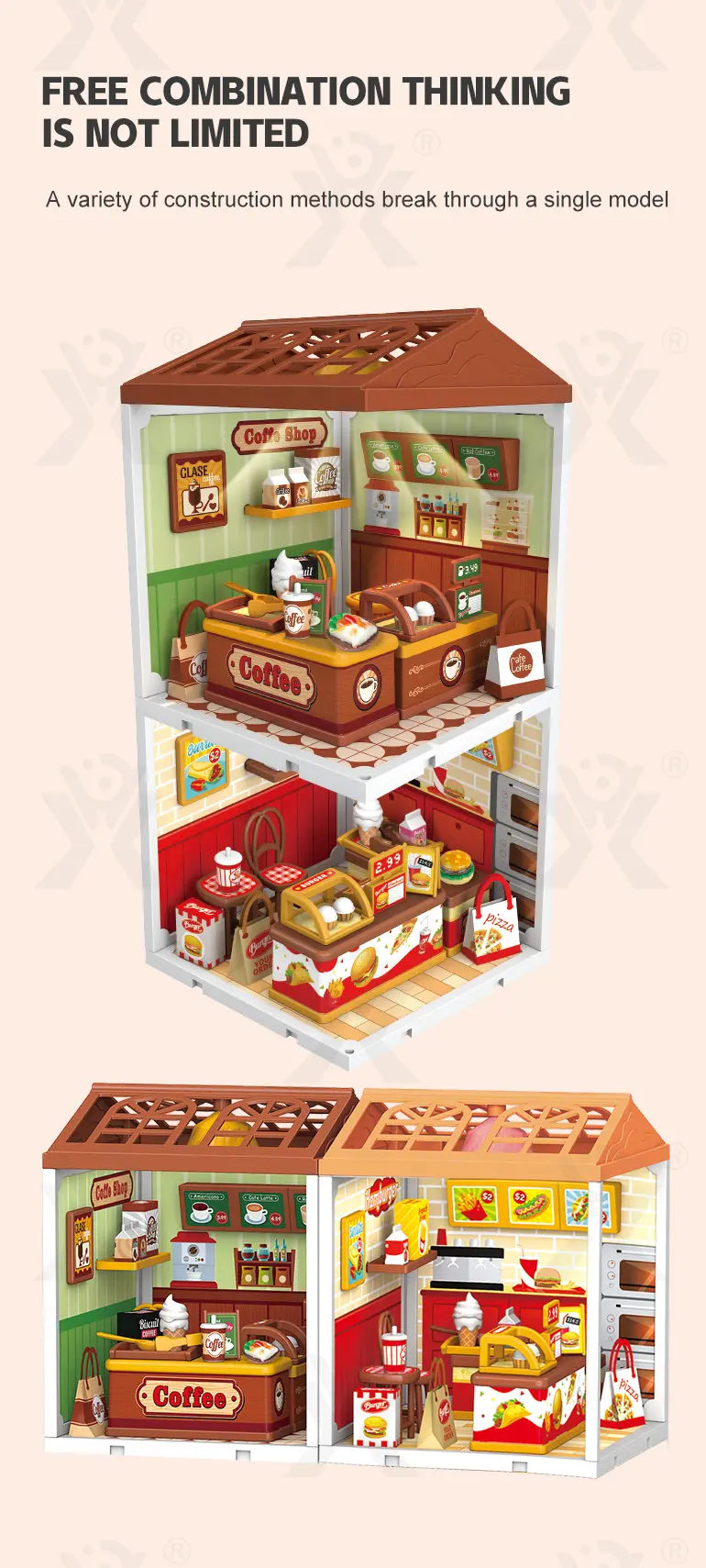 This is not a single-model kit. With multiple store types and construction methods, children can mix and match pieces to create unique combinations.“A variety of construction methods break through a single model,” – encouraging creative thinking and architectural exploration beyond following fixed instructions. -