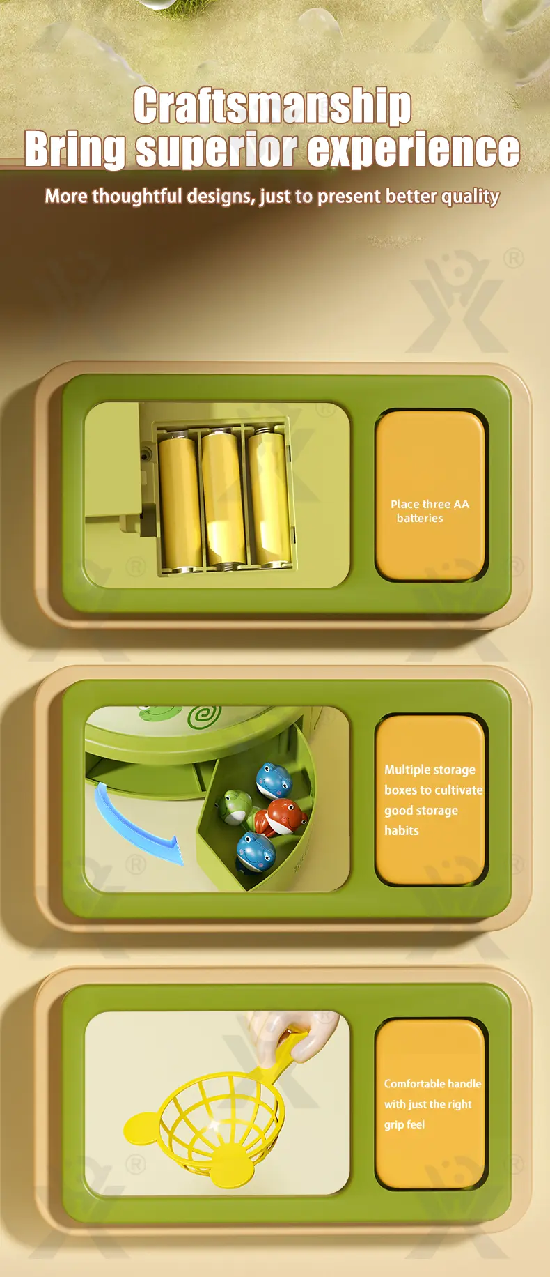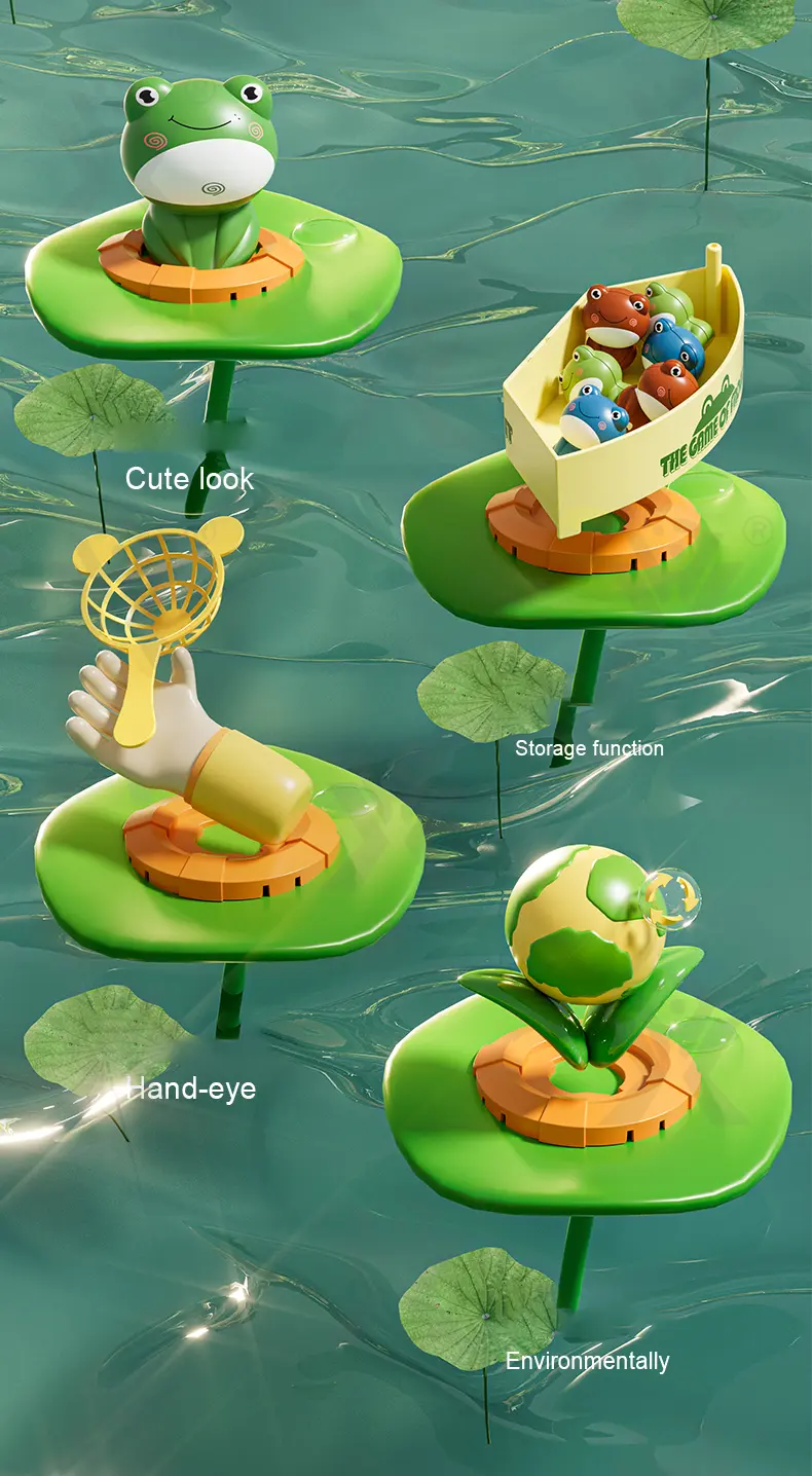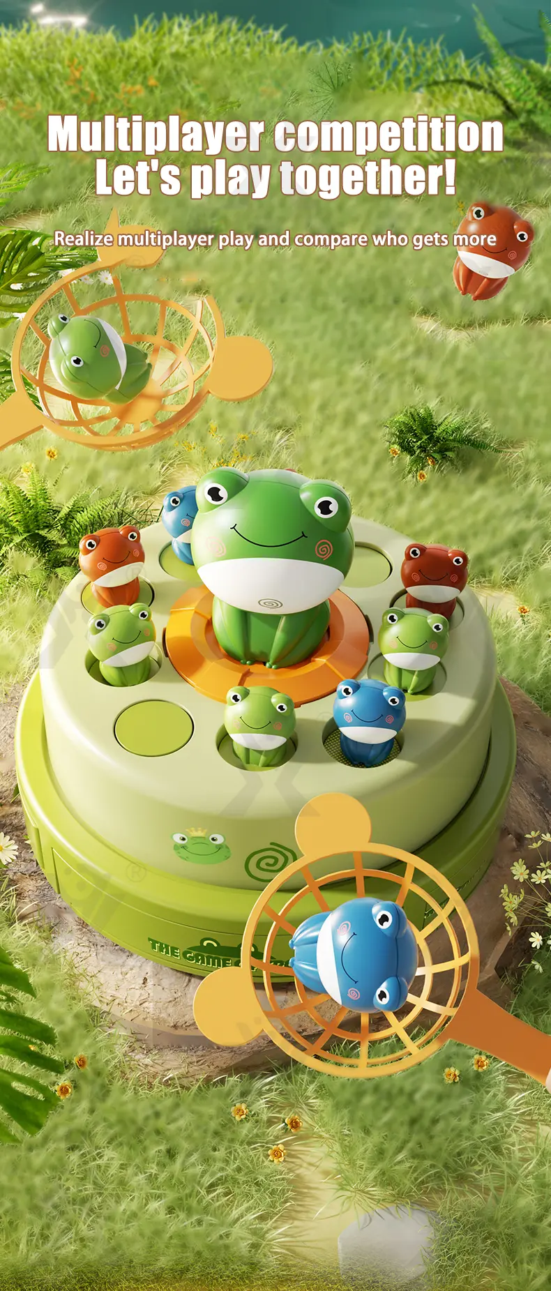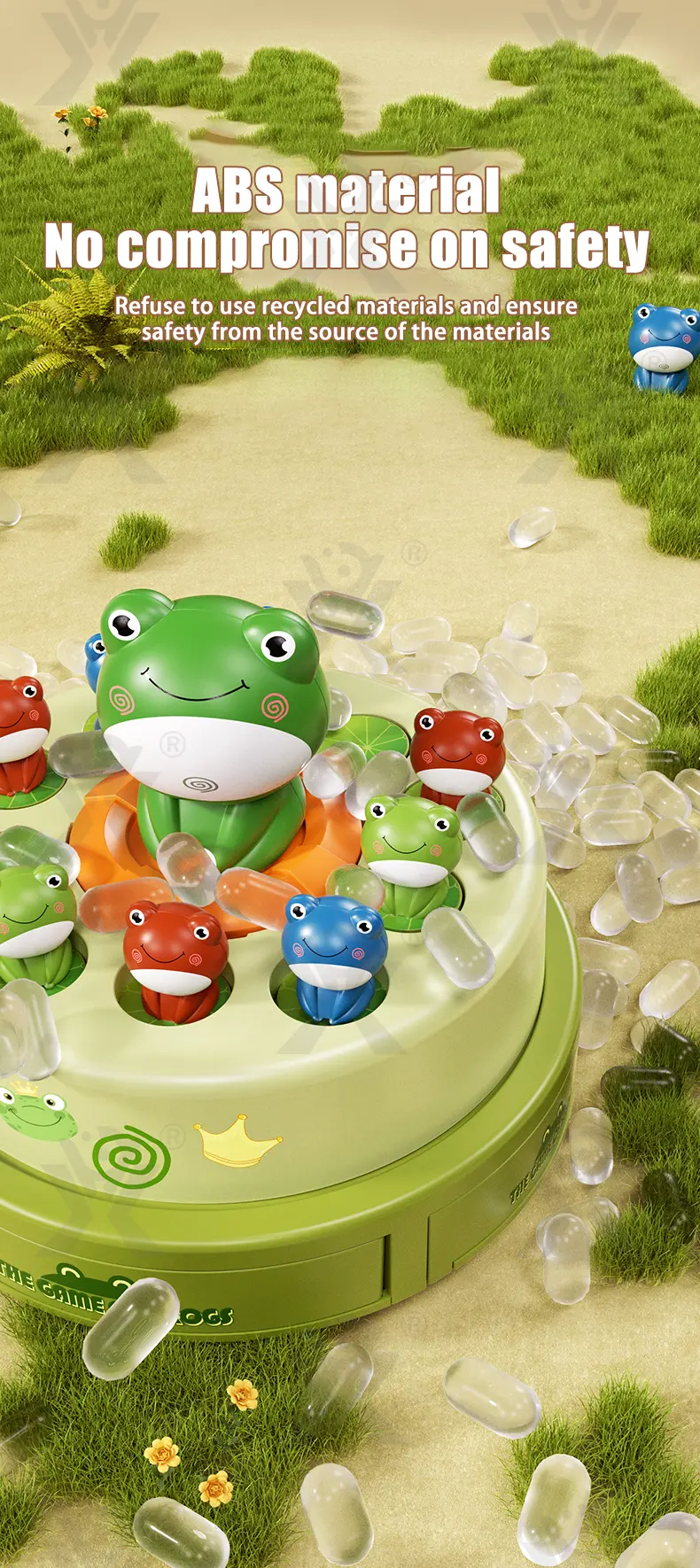 Wholesale bounce and catch game toy, frog themed, multiplayer competition, develops hand-eye coordination, 3-level music switch, cute design, storage function, eco-friendly material, joyful interaction.