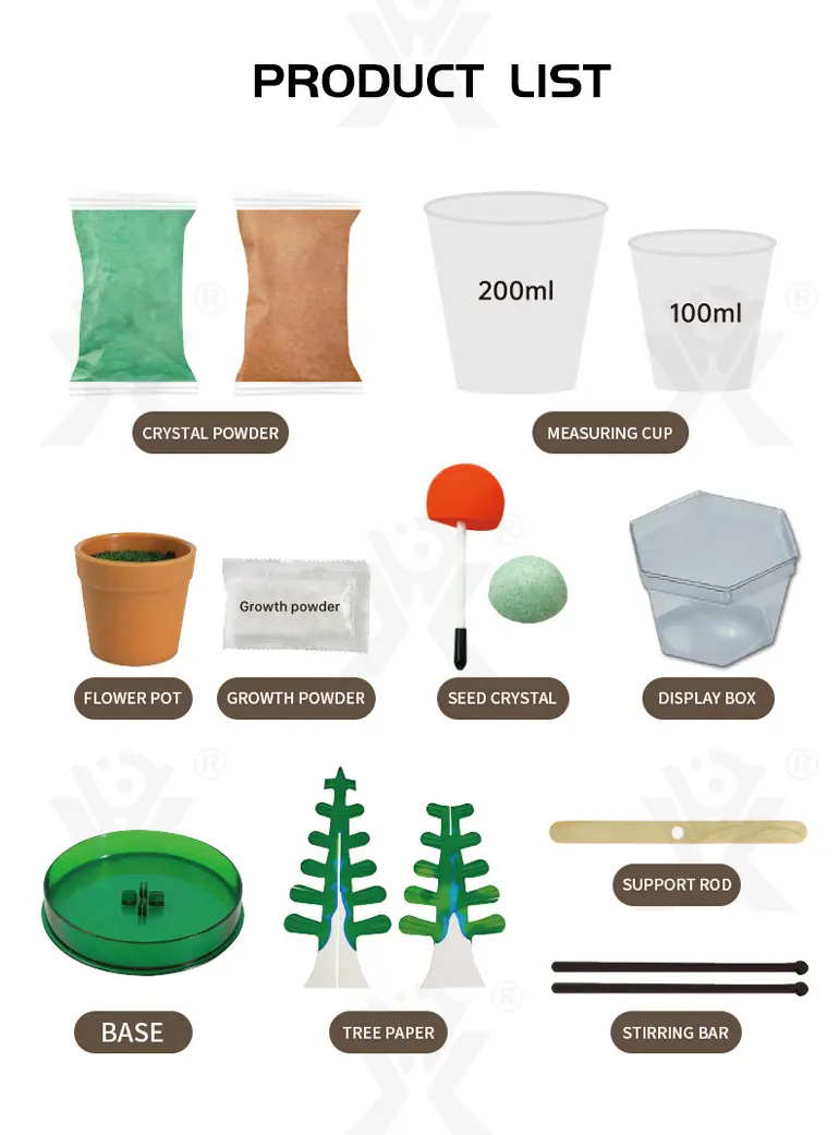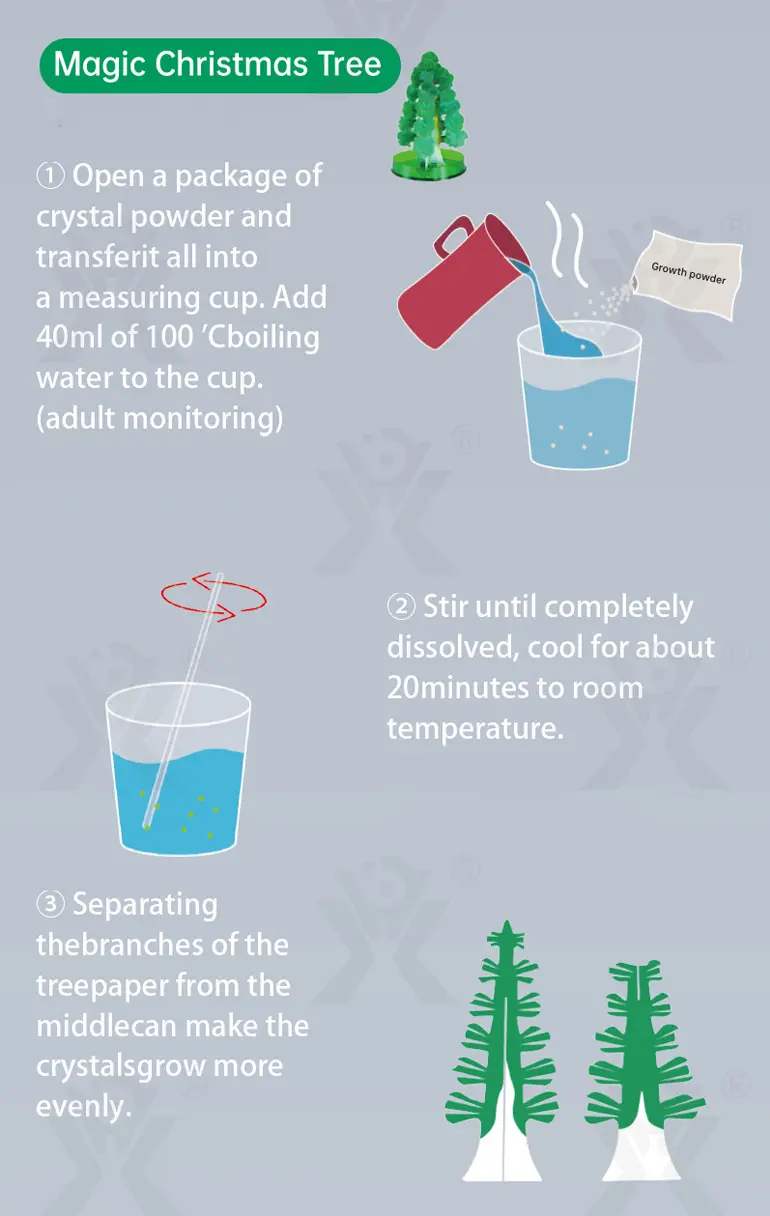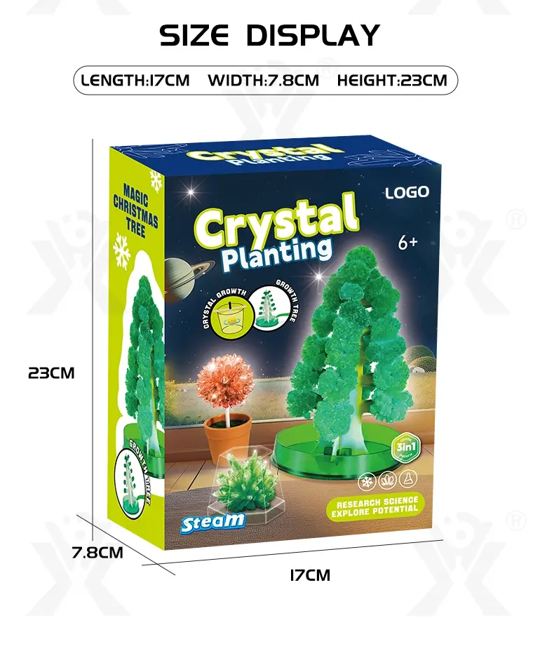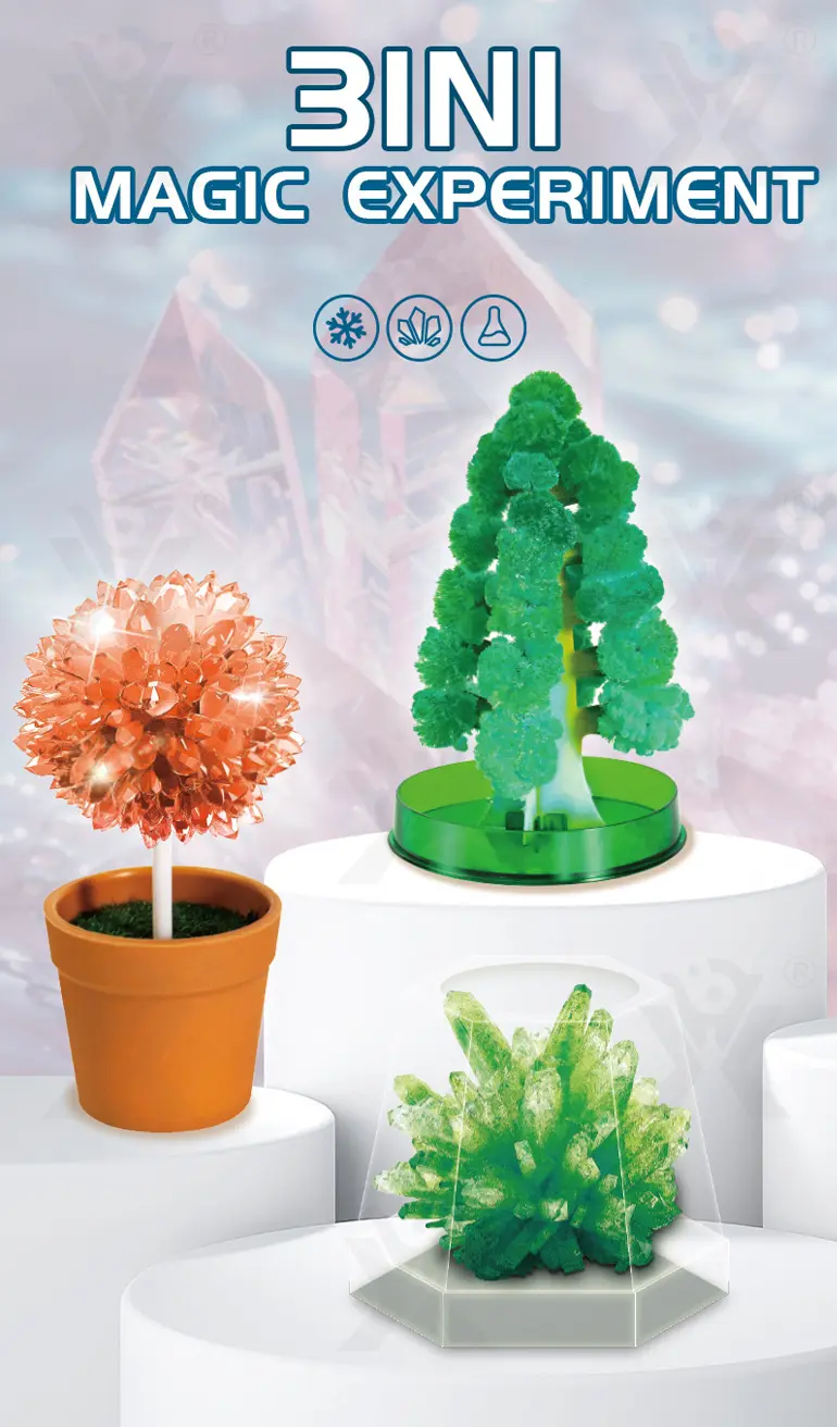 Wholesale magic Christmas tree toy. This is a 3-in-1 magic crystal planting experiment, which helps scientific cognition of natural crystallization, develops logical thinking & exploration ability, parent-child interaction, and creates million-year crystals in a short time.