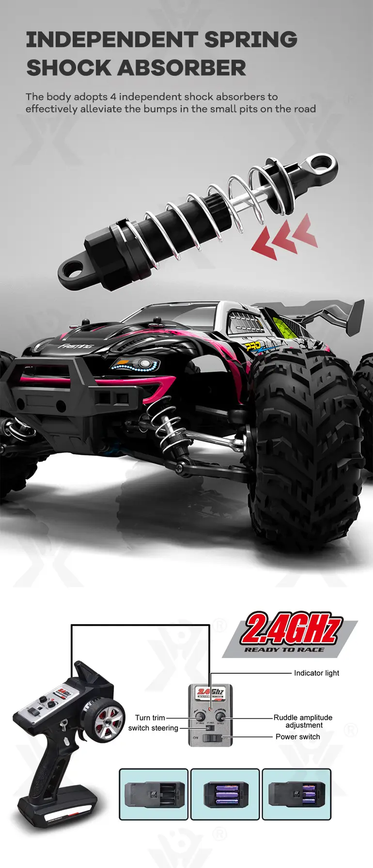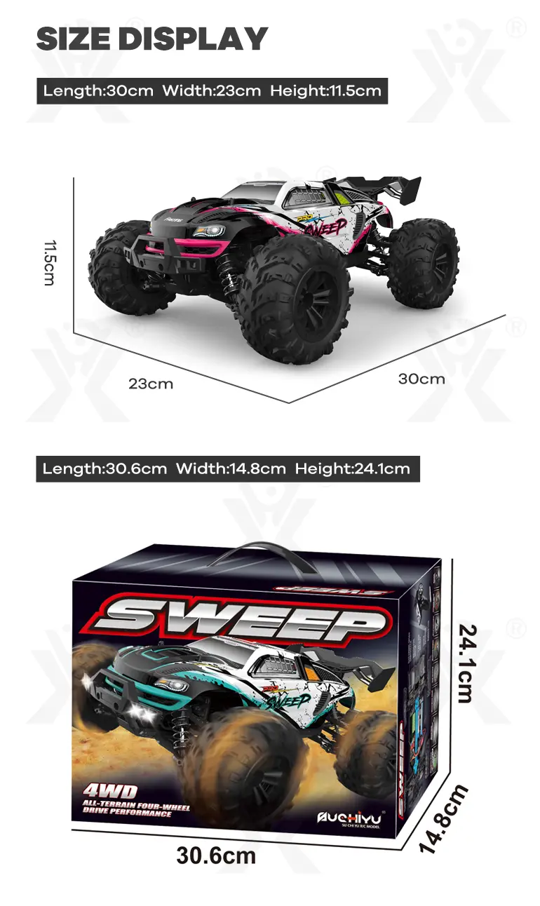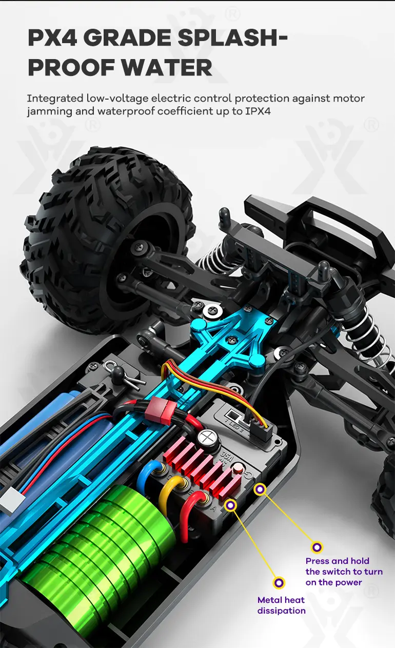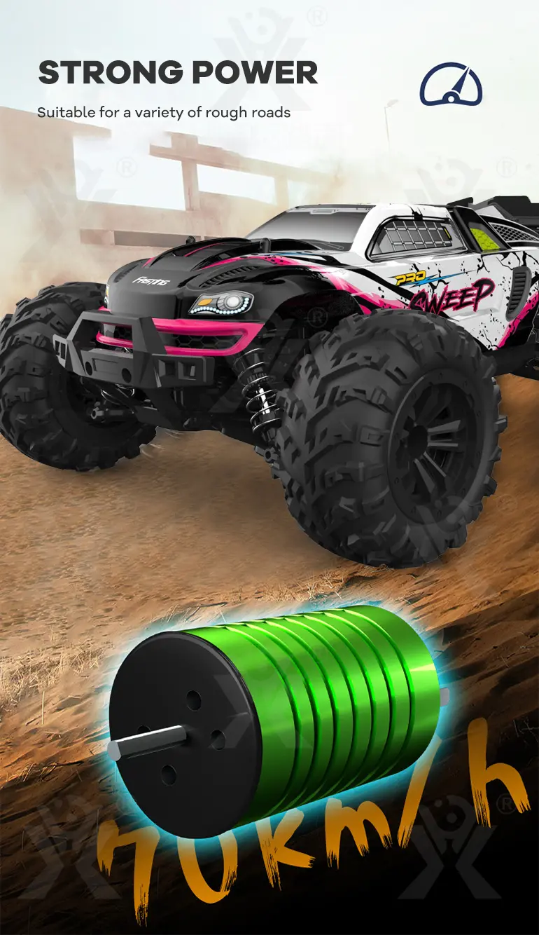 Our wholesale RC off-road car toy has a high-performance brushless motor with a 35A electronic speed controller for powerful acceleration and speed.
